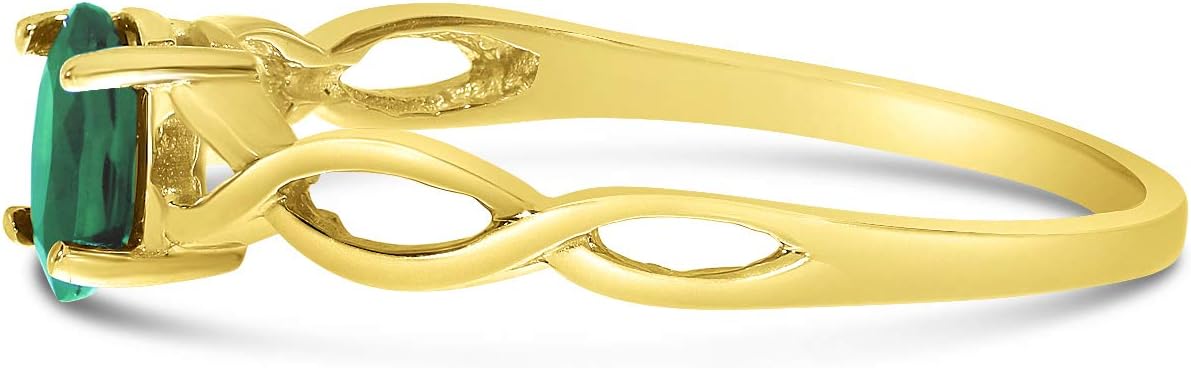 This 10k yellow gold oval emerald ring features a 5x3 mm genuine natural emerald with a 0.16 ct total weight.