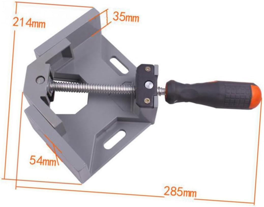 Package List 1 x multi-function right angle clamp Features - Size: About 28.5 x 21.4 x 5.4cm/11.22x8.43x2.13inch 90 degree angle clamp. - Material: Metal Wood working right angle clamp. - Color: Grey. - Made of durable and stronger but lighter material to hold, stready and tightly Wood-working angle clamp. - 90 Degree shape design, fit for woodworking use woodworking right angle clamp. - Unique anti-skid handle design make you use it more easily and more tightly wood angle clamp. - Fit for for welding, framing, drilling, doweling, making cabinet, installing furniture, frame use. - Adjustable head and rotating spindle screw let you adjusted to and hold work pieces precisely.Goods DescriptionWood working right angle clamp Made of metal material, durable, light weight and more easy to use, Unique handle design make you fix the material more tightly, anti-skid design make for for welding, framing, drilling, doweling, making cabinet, installing furniture, frame use