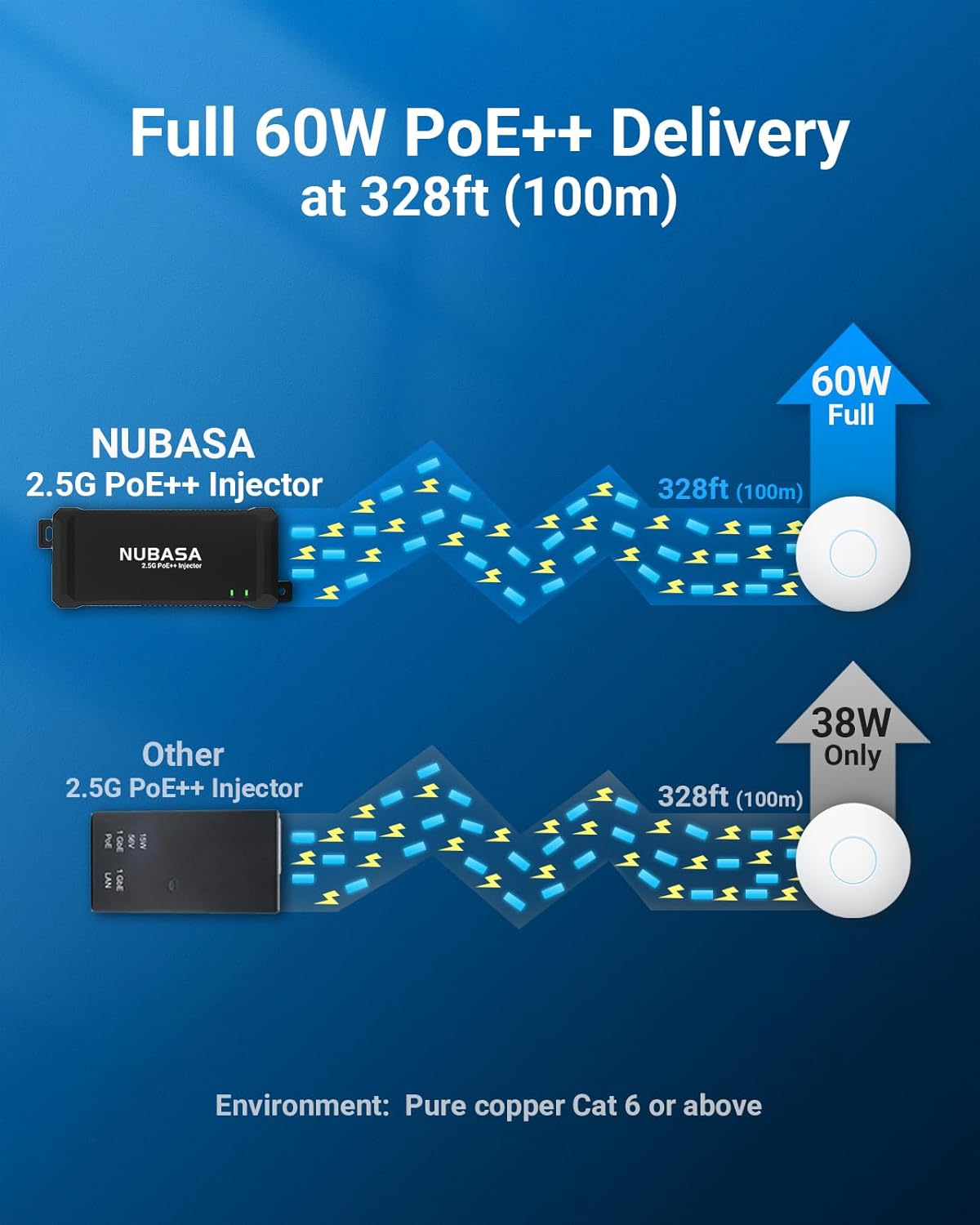 | BuiltIn Media | 2.5G PoE++ Injector × 1 pcs, 3.28ft Cat6a Cable x 1, User's manual x 1, Wall-mount screws x 2 |