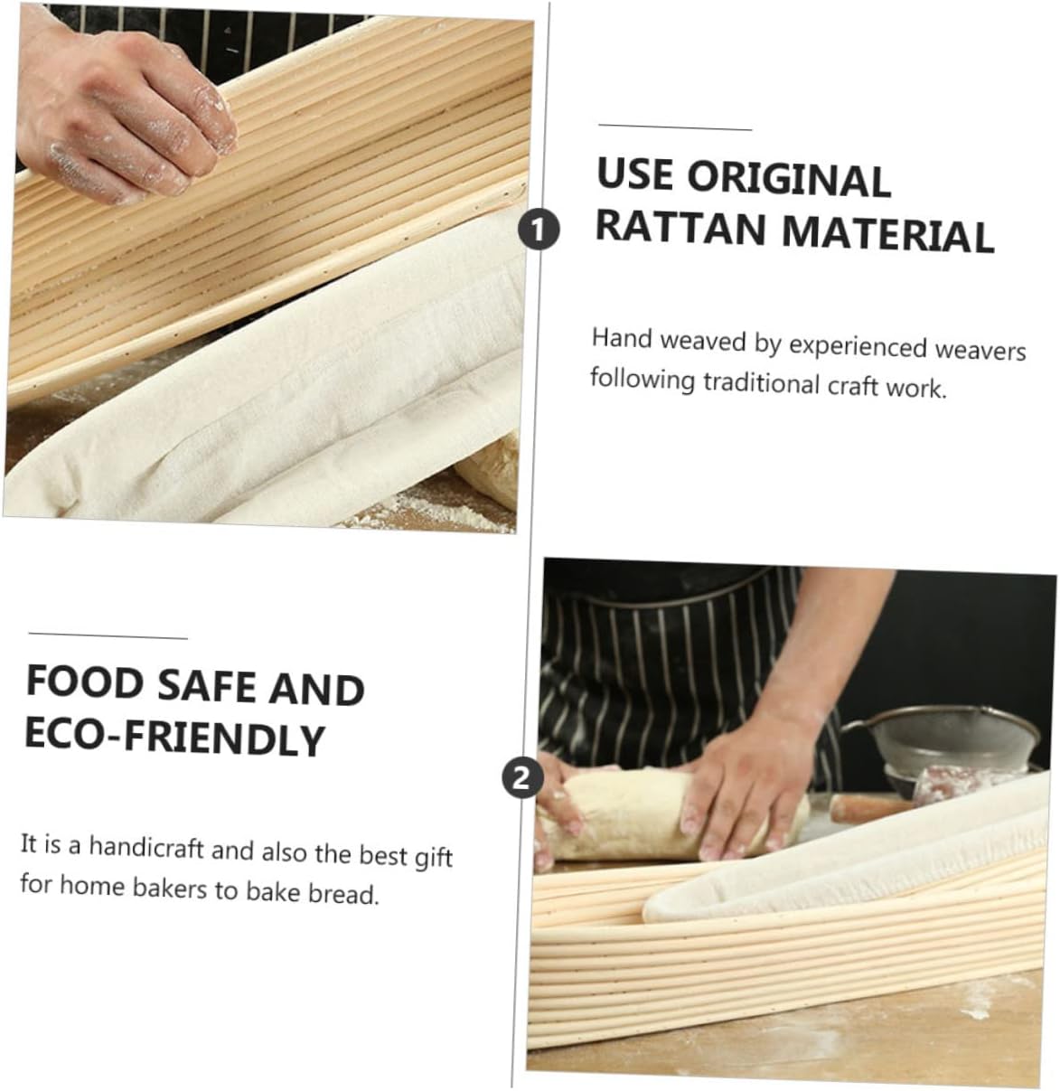 Package List 2 x bread basket Characteristics Color: Beige rattan bread Size: 34. 00X10. 00X5. 50cm/ 13. 36X3. 93X2. 16inch loaf proofing basket. Material: Rattan bread proofing basket Package Including dough rattan basket 1 x bread basket Bread Baking ToolGoods Informationsourdough proofing basket This bread proofing basket set is helpful baker and people who to make fresh and healthy bread themselves.dough rattan basket A housewife can make delicious for their little , or you could work together with your , make some bread