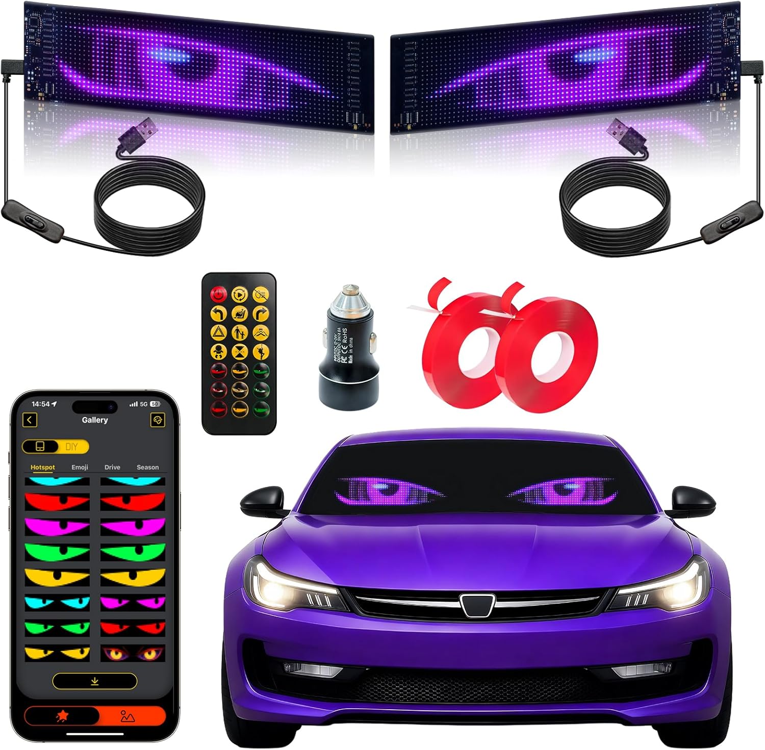 | Included Components | 2 Rolls of Tape, 2PCS Flexible LED Sign, 2PCS Remote, 2PCS USB Cable |