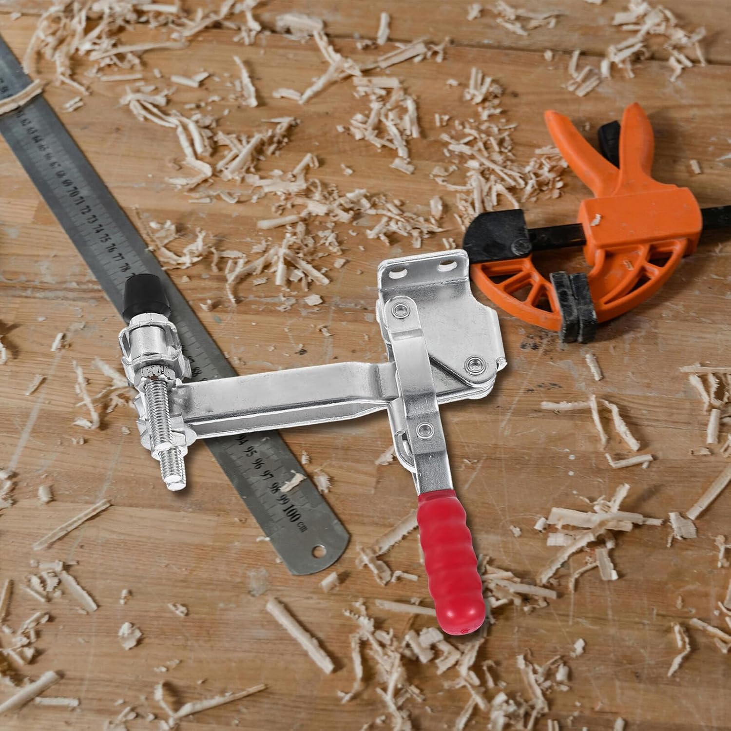 Package Include 2 Characteristics -Multifunctional use: this clamp is great for a wide range of applications, from woodworking to metal processing, making it a valuable addition to any toolkit rubber tip toggle clamps -Material:Galvanized iron -Welding clamp: specifically designed for welding tasks, it offers stable clamping force, ensuring precision and safety during welding operations toggle clamp -Screw: M8; hole diameter:7mm metal hardware toggle clamp -Quick clamping: featuring a quick clamping mechanism, this tool saves time and reduces labor, making your tasks more efficient welding clamps -Product Info:Welding clamps -Size:23.90X14.30X7.00cm/9.39X5.62X2.75in -Color:Red -Dualhead design: the vertical dualhead clamp provides superior clamping efficiency, ensuring your workpieces are held securely in place welding accessory -Versatile application: ideal for various work scenarios including woodworking, metalworking, and machine operations, enhancing your workshop's versatility vertical quick clampGoods Informationquick release toggle clamp The vertical toggle clamp is an essential tool for woodworking and welding projects.toggle clamp Simply position the clamp, engage the handle, and your workpiece is held firmly in place, allowing for precise and safe operations.welding toggle clamp replacement Whether you're working on a woodworking fixture or welding a metal piece, this clamp provides quick and reliable fixation.wood working clamps Its robust metal hardware ensures a firm grip, making it ideal for holding down materials securely