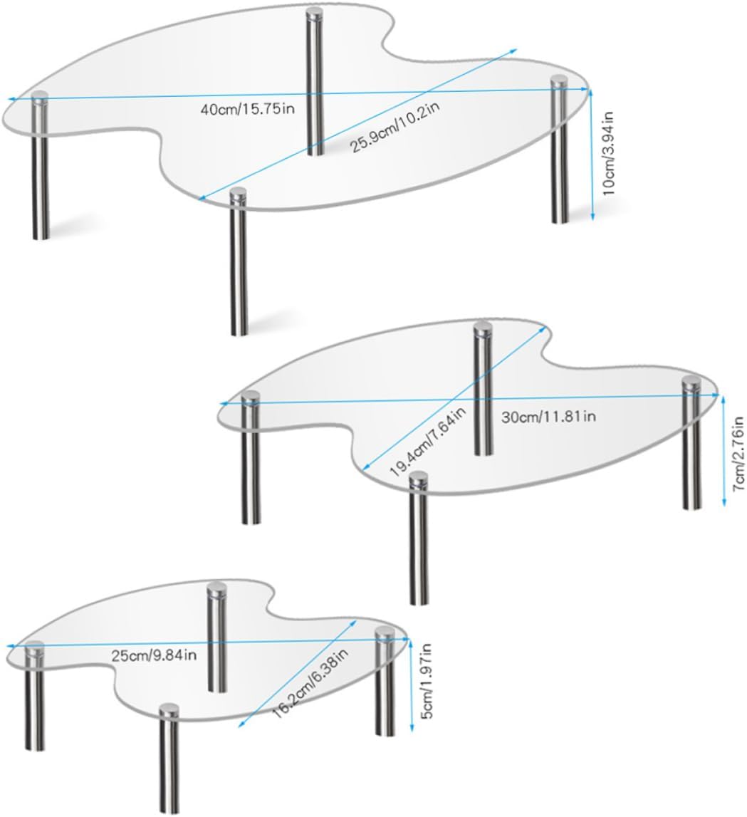 Package Include 3 x Display Stands Features -Size:40.00X25.90X10.00cm/15.72X10.18X3.93in food stands for display party -Material:Acrylic,Metal organizing stand -Size:25.00X16.20X5.00cm/9.82X6.37X1.97in doll storage organizer -Size:30.00X19.40X7.00cm/11.79X7.62X2.75in doll storage rack -Color:Transparent acrylic risers for display - You can display a variety of fragrances as a perfume organizer on a dresser or as a cupcake tray at a party perfume stand organizer for dresser. - Help to keep your room clean and tidy, this product can display your doll or decorate your home cosmetics storage stand. - With the display stand, you can make your items store in an organized way in daily use display stands. - Made of acrylic material, this product is stable performance and acrylic perfume stand. - A nice helper for storing and displaying your doll , which can provide convenience for shelf.Goods Descriptionperfume organizer for dresser Also, it would provide you more space for placing many items like sundries, cosmetics and doll , etc.acrylic display stands The storage rack is well-made from acrylic material, which are extremely and .cupcake display stand The display stand can help bring organization, storage space, and tidy to your desktop