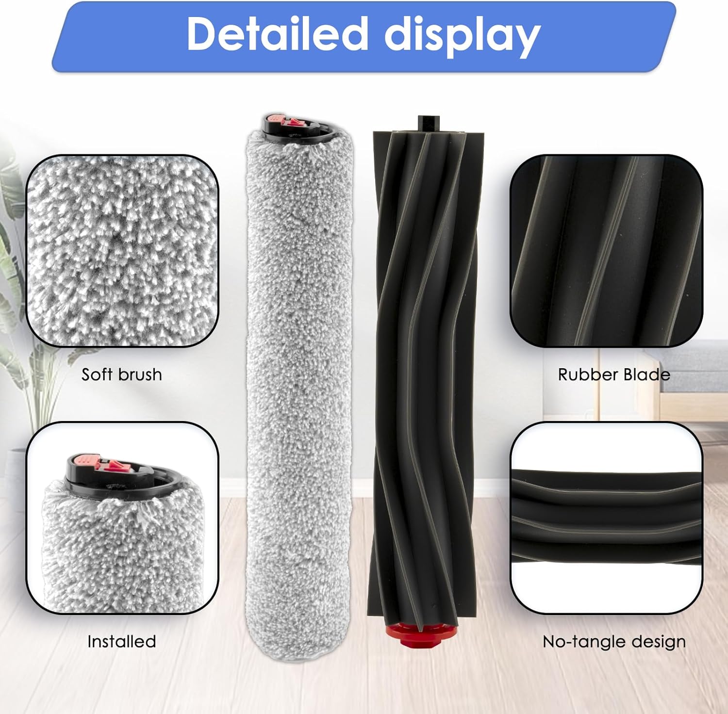 High quality rubber roller brush*2 + roller mop*2/ Premium rubber and high-density microfiber soft flannelette materials/ Perfectly compatible with Eufy Omni S1 Pro robot vacuum cleaner/ Environmentally friendly