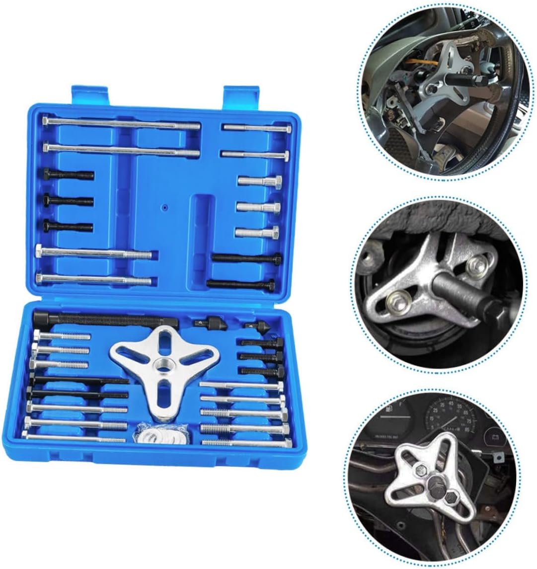 Package List 1 x set of puller tools Features -Material:Carbon Steel puller -Durable construction: built from metal materials, ensuring the tool's durability and longterm use gear puller -Easy disassembly: prevents damage to the and vehicle during the removal process pulley puller tool -Universal compatibility: suitable for a variety of models, making it a versatile tool for different vehicles steering pulley puller -Quick removal: the removal tool allows for fast and easy removal and installation of steering wheels disassembly remover -Essential for maintenance: a musthave tool for automotive repair and maintenance, perfect for both mechanics and DIY users puller -Size:27.50X20.00X4.50cm/10.81X7.86X1.77in remover -Color:Assorted Color wheel hub pullerGoods Informationpulley puller tool kit This puller and disassembly tool set is designed to make automotive maintenance tasks easier and .wheel removal kit The set includes a variety of pullers and removers, allowing you to tackle different types of steering wheels, crankshaft pulleys, and harmonic balancer