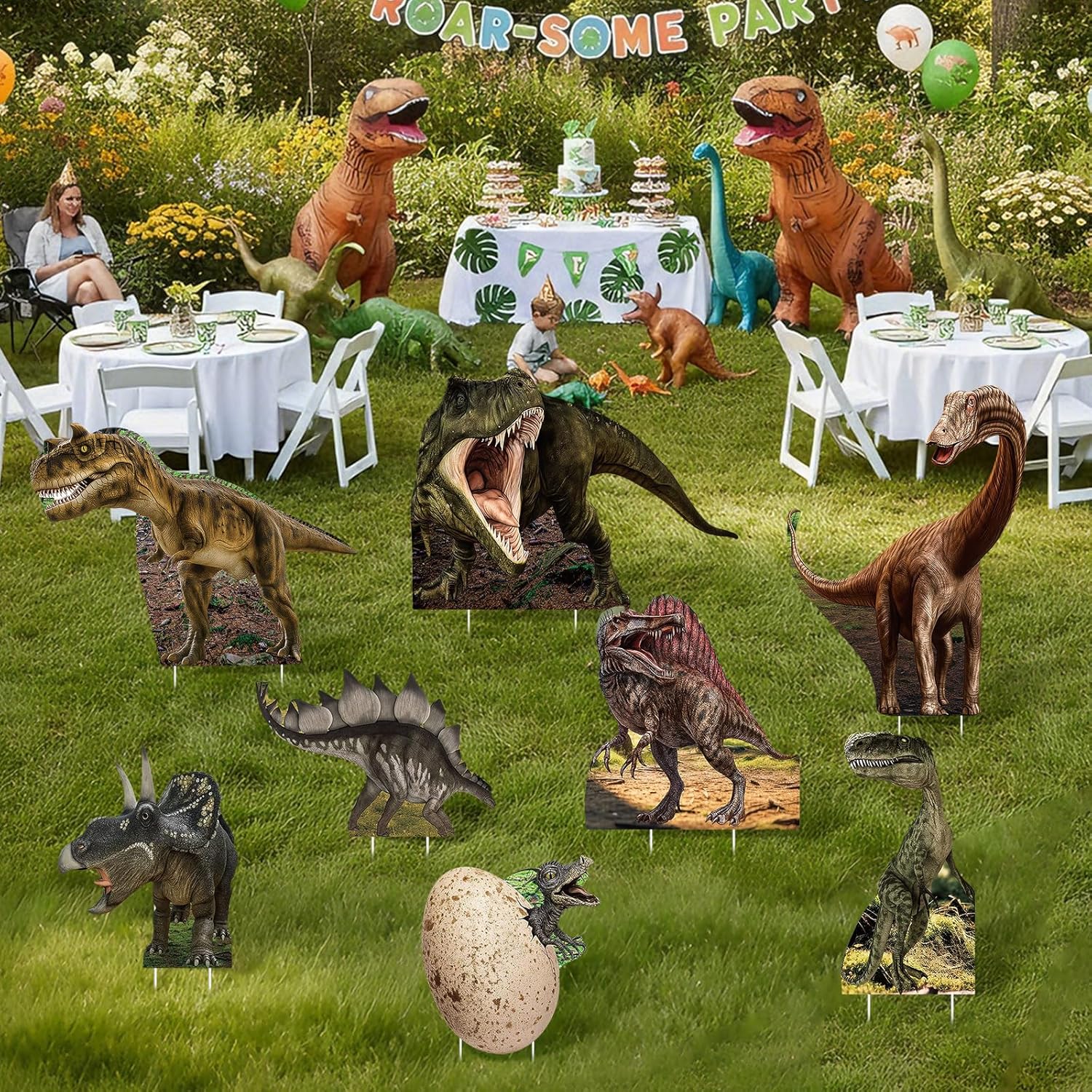 | Included Components | 8 x Dinosaur yard signs with stakes, 16 x 35 cm plastic ground stakes, 14 x 15 cm connecting stakes, 8 x thickened hard glue |