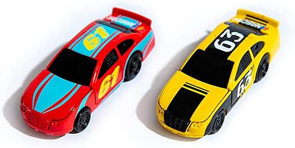 Race, wreck, and rebuild – The NASCAR Crash Circuit is designed to ensure high-speed racing and thrilling crashing action. Bring the excitement of NASCAR home with the one-of-a-kind NASCAR Crash Circuit Ultimate Road Course with Winner’s Circle for hectic, high-velocity racing action. With extended straits, and snaking turns; this 14 foot double width racetrack (1.8 metres approx. once the track is assembled) is made for insane speed and colossal collisions. The bonnets, doors, and roofs of both the cars fly apart upon impact. The Cars easily snap back together for continuous racing action. Wind the cars up with the two included car winders (each winder requires 3 x AA batteries, not supplied) in 10 seconds or less and watch the action unfold then place your car on the Winner’s Circle and do donuts to celebrate your victory. Suits ages 5 years +.