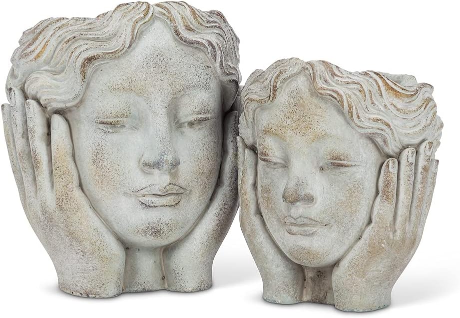 With this Medium Head in Hands Planter, you won't have to ponder the perfect place for your favourite plant or flowers any more! Crafted out of cement, the gorgeous detail of this planter harkens back to classic Roman sculpture - an elegant, eye-catching way to display your brightest blooms. Smaller size also available.