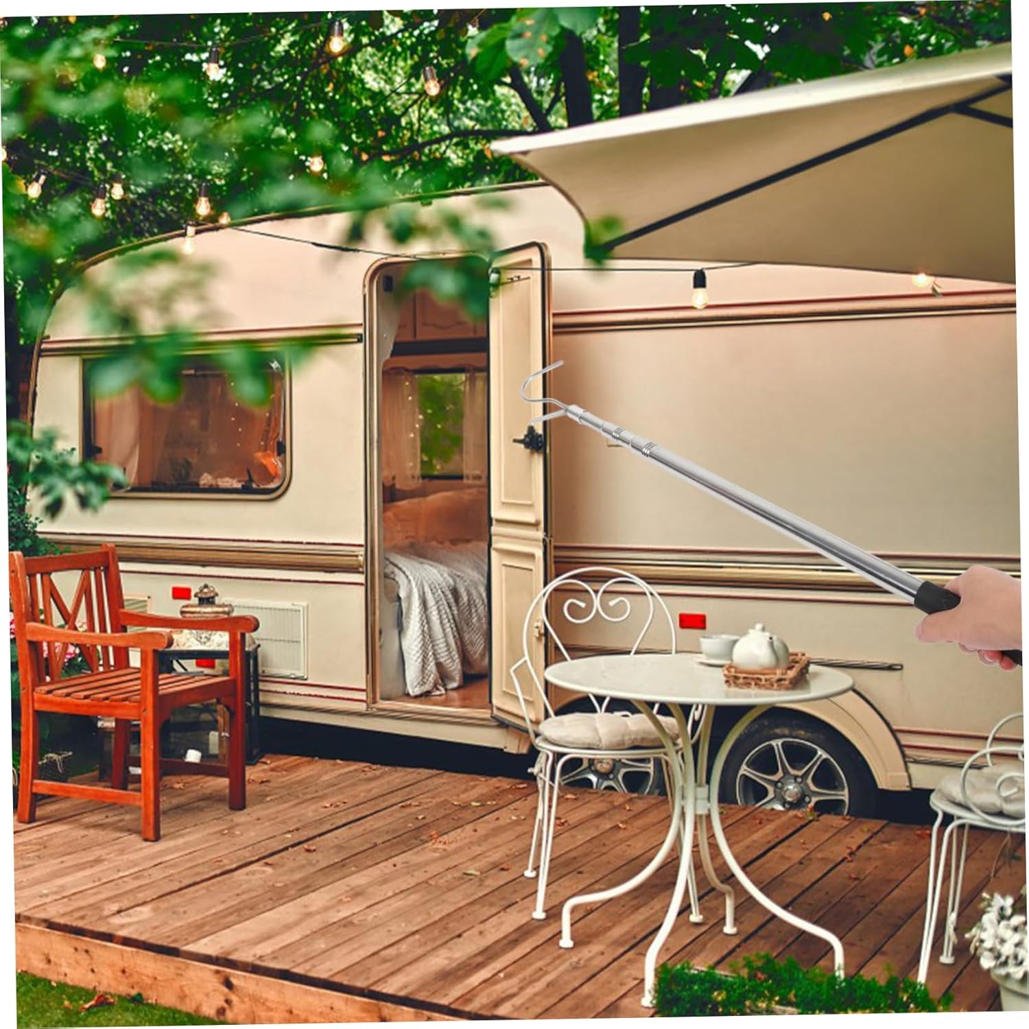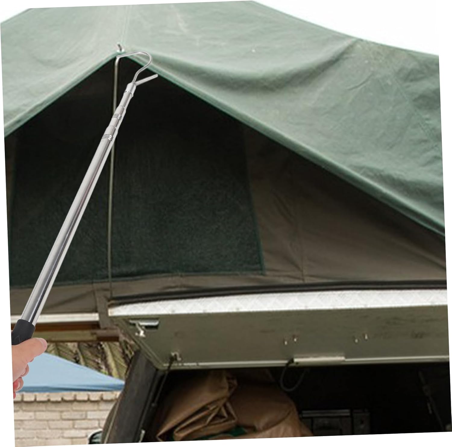 Package List 1 x Puller rod with hook Features -Adjustable: 60cm-1.5m awning hooks -Material:Stainless steel tent opener rod -Color:Black rv shade hook -Product Info:Awning telescopic pole -Size:150.00X10.00X2.00cm/58.95X3.93X0.79in rv awning hooks -The tool features a retractable pole with an included hook. This awning pulling rod is practical tool for camping or picnic awning rod opener. -This pulling rod is perfect for setting up tents, shelter and camping awnings tent awning pull rod. -With this awning pulling rod, you can pull up awning more convenient and easily, saving time or effort rv awning puller. -A must-have tool for outdoor enthusiasts. This is portable and easy to carry and use rv awning opener rod. -This rod is is durable and stable, with a quick extension and retraction feature telescoping pull pole.Goods Informationcamping awning puller Whether you're setting up a tent, seeking shelter, or enjoying a camping awning, this puller is perfect.awning rod The pole can be easily retracted, and the included hook adds convenience.tent awning pull rod With its quick extension and retraction feature, you time.telescoping pole with hook This RV Awning Opener Puller is a must-have tool for any outdoor enthusiast.camper awning canopy rod Its portable design makes it easy to carry and use wherever you go.extendable pole with hook Crafted with stable materials, it ensures durability and reliability