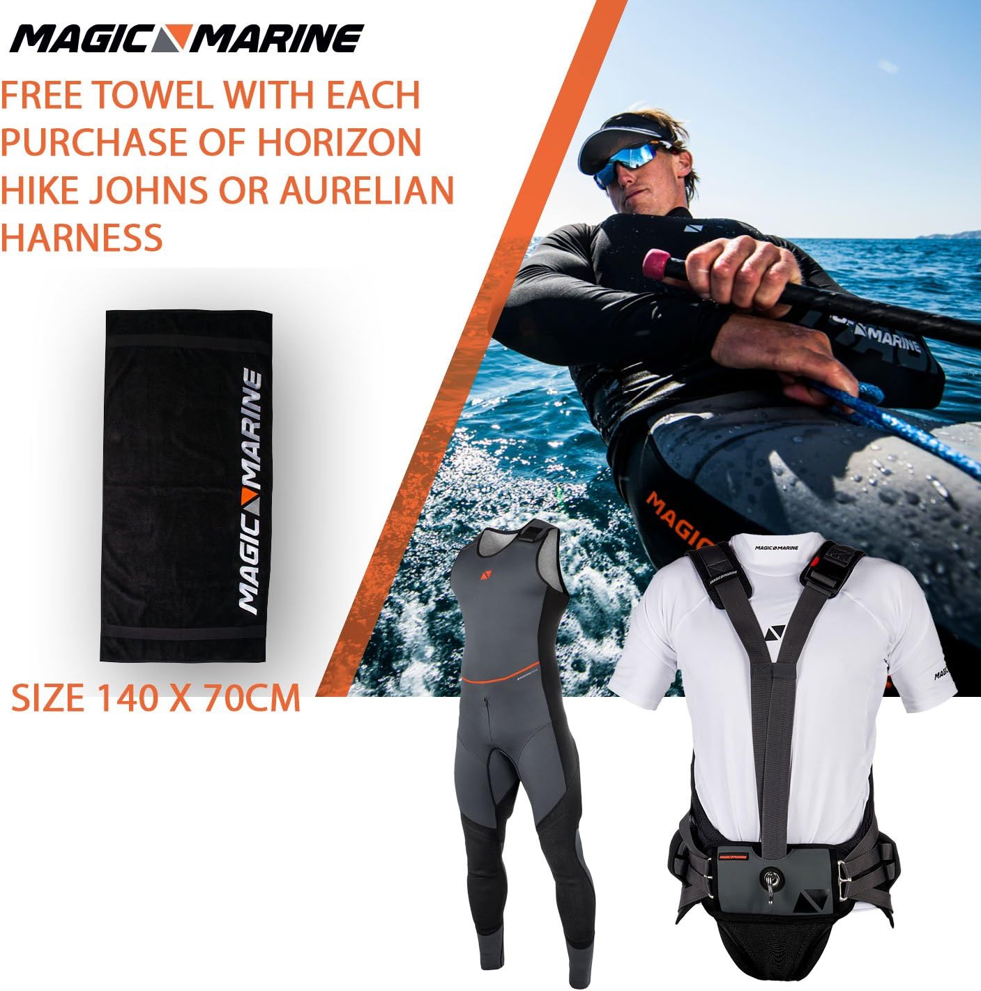 Designed in collaboration with Martine Soffiatti Grael 2016 Olympic Gold Medalist and Magic Marine teamrider. This harness offers all round support in the most vital areas. A stiff foam panel in the back supports the two main muscles in your back where a thinner panel at the spine allows for freedom of movement. The back panel is widened to give full support to the back with additional softer foam panels extending at each side of the back. There is NIA foam used in the hip panels to add further protection from impact whilst improving comfort at the hips. A wide spreader bar has been developed to spread the load around the body and improve posture. This can be adjusted with the 4-part adjustment system to ensure a good fit for every individual where the adjustment allows the harness to be adjusted through the mid back and the butt parameters. All parts of the harness have been designed with the sailor in mind to promote longer durations on the wire whilst limiting potential back and hip pain. Ideal for strong wind conditions. Materials Kevlar reinforced seat part Ripstop nylon polyester Neoprene crotch construction NIA Impact foam at hips Stainless steel spreader bar Features Designed alongside Olympic Gold medallist Martine Soffiatti Grael for optimum performance Integrated back support construction through clever combinations of foams 4-part side adjustment Wide pre curved spreader bar to spread the load from the trapeze Wide fit at back Shoulder strap release system Kevlar reinforced seat part Neoprene crotch strap with breathable comfort sides Weight 1400g