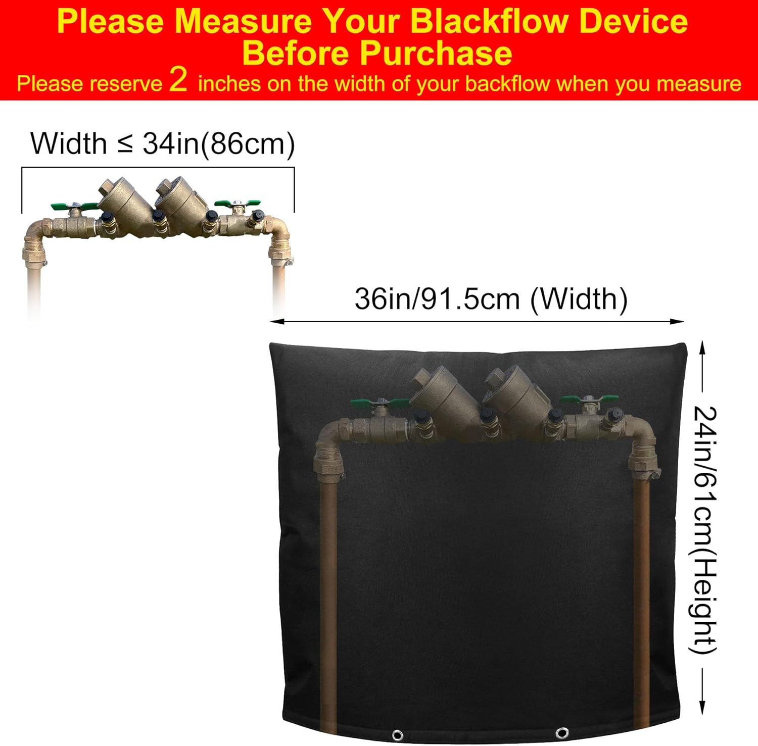 | Coverage | Backflow Winter Cover 36"W x 24"H |