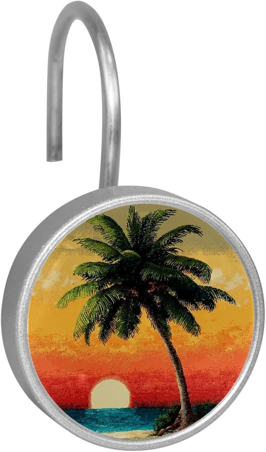 MATERIAL: glass, stainless steel. These shower curtain hooks can be decoration bathroom and will be long-lasting.12 pieces of shower curtain hooks, round crystal glass decoration, printed patterns, silver hooks to match various styles of bathroom shower curtains. SIZE: Crystal glass diameter of round shower curtain hook is 1.45x1.45in/ 3.7x3.7cm. The shower curtain hooks diameter is about 1.1in, 12 pieces shower curtain hooks are suitable for rod of 8-28mm(0.3"-1.1"). RUST RESISTANT:Shower hooks are made of stainless steel and crystal glass, which is durable, rust-proof and corrosion-resistant, it will not rust suitable for wet bathroom environment. EASY TO INSTALL:Hand the shower curtain hooks hold securely on straight or curved shower curtain rods,slid easily and smoothly. Easy to install and decorate your bathroom. BEAUTIFUL AND ELEGANT:Beautiful Love hook add charming scenery for your bathroom, baby room, bedroom, living room, and the gorgeous style is easy to match with any kinds of bathroom shower curtain. EASY GLIDE: Open and close your shower curtain quickly and easily with the Shower Hooks, easily glides on shower curtain rods and tension rods. No snagging; no effort; no hassle PACKAGE: 12 shower curtain hooks in a pack.The bathroom curtain hook has a smooth appearance and can be hung on the pole to pull it at will. Special price 12 sets to meet your needs.