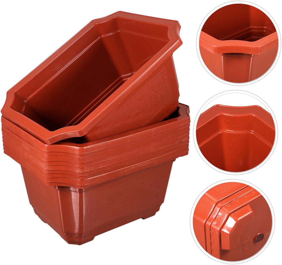 Package List 10 x Flowerpots Features -Product Info:Thickened fruit tree flower pot -Size:30.00X21.00X12.00cm/11.79X8.25X4.72in -Color:Red -Material:PP - The Bonsai Pot is easy to and display, space-saving and practical indoor or outdoor rectangle bonsai pots. - The minimalist style of these Planting Pots can go well with many household styles garden flower pot. - workmanship and detailed appearance make flowerpots look good, safe to use bowl planter outdoor. - Suitable for greening engineering, gardening, balcony garden, flower garden nursery production plastic planter. - The Flowerpot can be used as home furnishings, gardening, home gardening, balcony, etc bonsai flower pot.Goods Informationplastic bonsai pot The pot has holes, so can control the amount of water and protect your plants.garden pots container Made of plastic material with smooth texture and craftsmanship.bowl planter outdoor Are you still looking for a flower pot and tray? Have you found a practical and Flowerpot? If not, then, these Bonsai Pots can be great choices for you