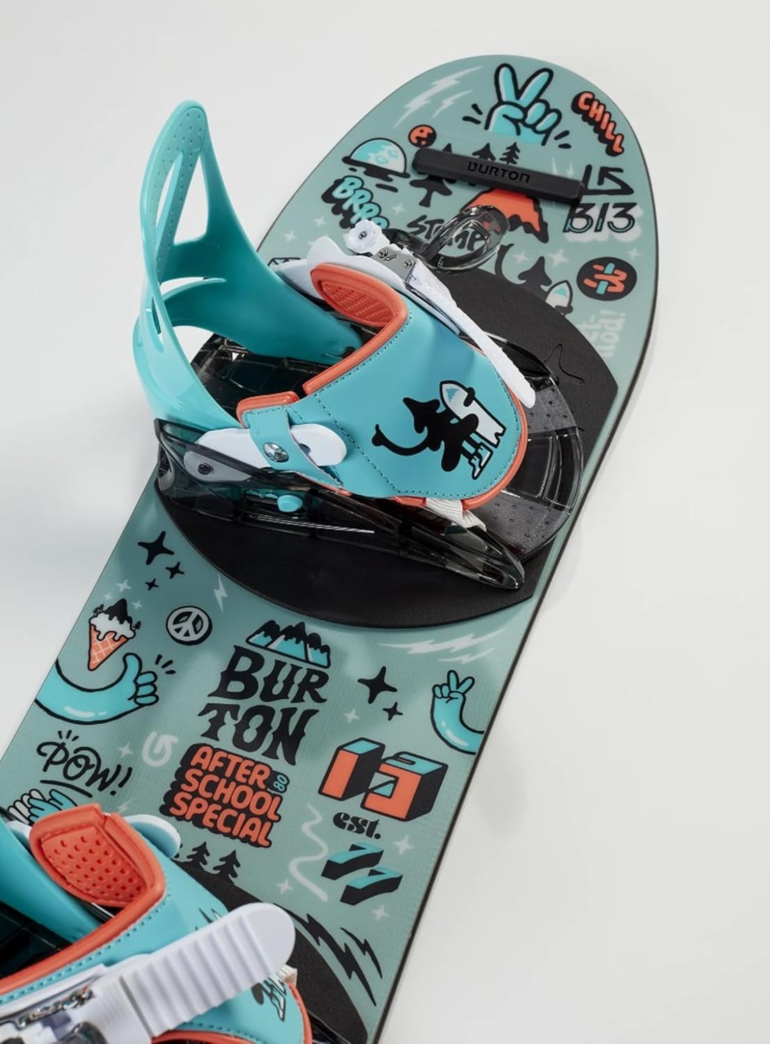 Even the kids know this is the best deal going. Better than watching hours of cartoons, the Burton After School Special makes learning a cinch with super soft, parent-friendly bindings and a saucer-like snowboard that teaches balance and board control. With the fully adjustable bindings pre-mounted in a beginner-friendly stance, simply grab the package and go. It doesn't get any easier than this.