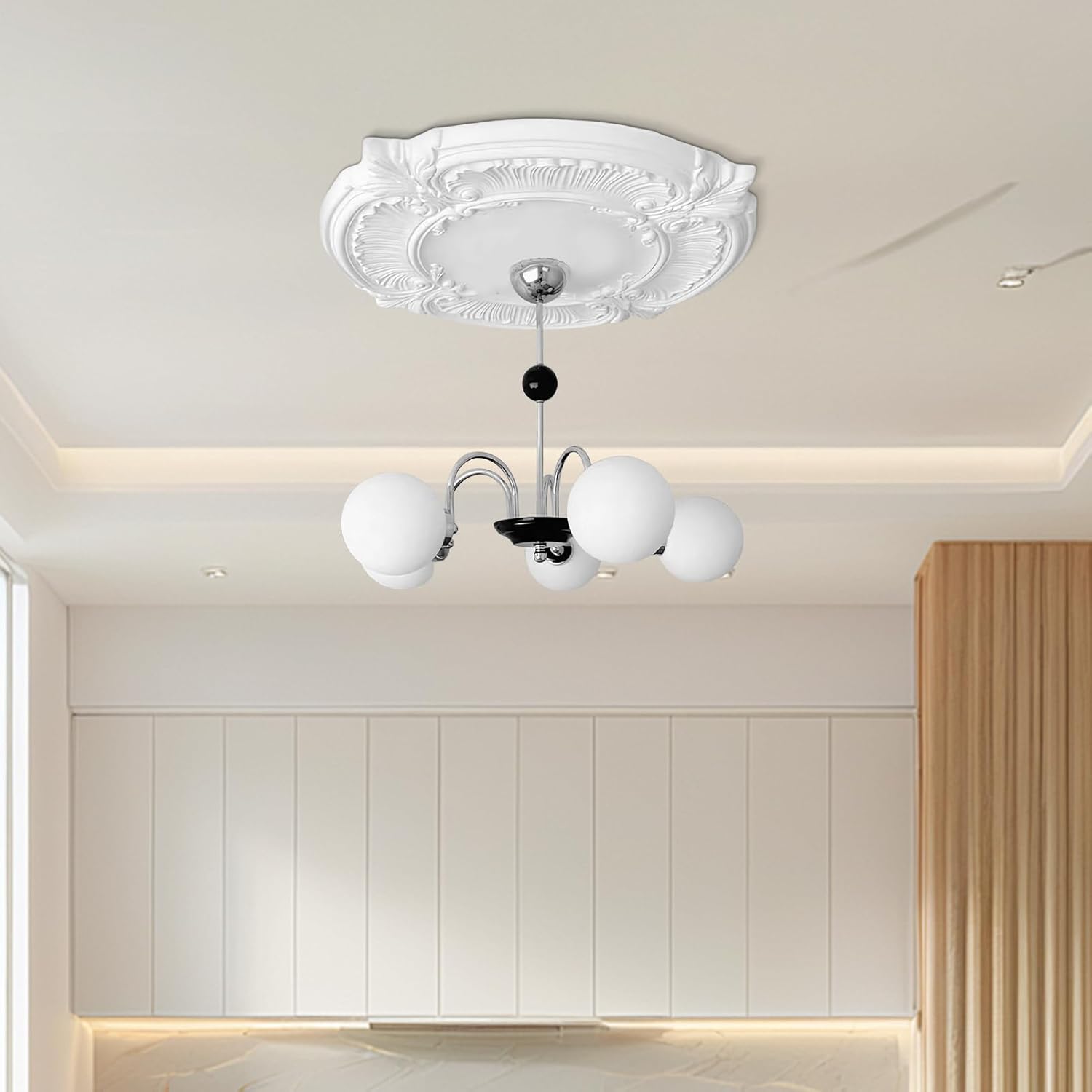 Enhance your interior spaces with this PU split ceiling locket, combining elegance and practicality. Adhesive backed design provides a tight fit when used to cover or trim shade areas. Ideal for living rooms, bedrooms, restaurants, studies, libraries and schools, offering both visual appeal and functional use. Specifications: Material: PU Product size: outer diameter: approx. 12 inch/30.5 cm, inner diameter: approx. 3.43 inch/8.6 cm Product weight: about 240g Packing list: 1 Pair * Split Ceiling Locket Note: Due to the different lighting and screen settings, the colour of the object may be slightly different from the picture. Due to different manual measurement, please allow 1-2 cm difference in size.