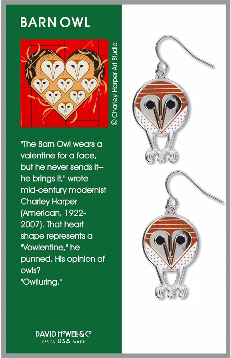 "The Barn Owl wears a valentine for a face, but he never sends it - he brings it", wrote mid-century modernist Charley Harper (American, 1922-2007). That heart shape represents a "Vowlentine", he punned. His opinion of owls? "Owlluring."