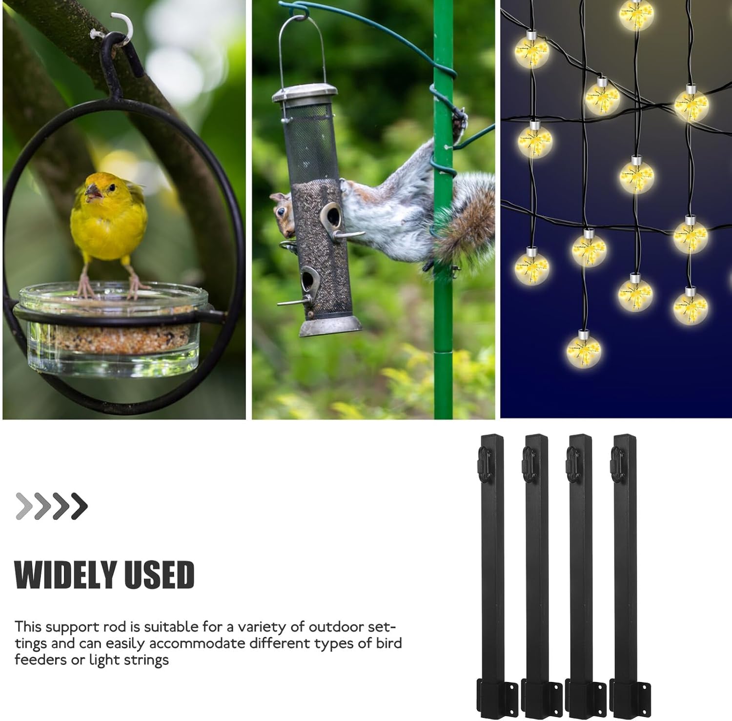 Package Include 4 x poles Features -Color:Black -Material:Steel -Size:40.30X5.00X2.50cm/15.84X1.97X0.98in -Product Info:Hanging string light pole -With its easy and installation process, this support rod can be set up quickly and without the need for any additional tools convenient pole. -This support rod is designed for outdoor use and can hold multiple bird feeders or hanging light strings, making it a versatile addition to any terrace, yard, or fence lighting pole. -This support rod is suitable for a variety of outdoor settings and can easily accommodate different types of bird feeders or light strings poles to hold outside lights. -Made from quality materials, this pole rod is durable, ensuring long-term use and reliable performance in any weather conditions. -This pole is a solution for those who need to hang multiple bird feeders or light strings in their outdoor space light poles for outside.Goods Informationbird feeder pole The Outdoor Light Pole is designed to provide sturdy support for hanging string lights, bird feeders, creating a charming addition to your yard, or fence.outdoor light pole The support rod is easy to install and can withstand various weather conditions, making it a reliable choice for enhancing your outdoor decor