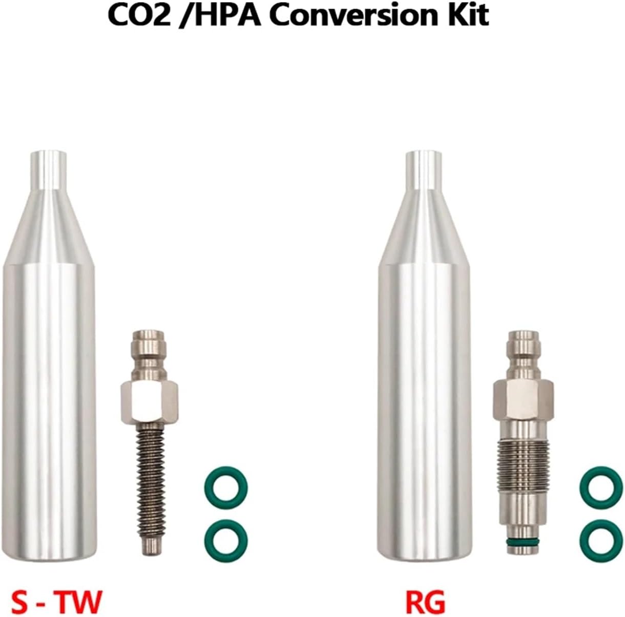 CylindersType : FittingsPackage including : 1 piece adpater kit according to your optionThreaded Type 1 : S-TW (1/4-20)Threaded Type 2 : RG (M12*1)S-TW : For S&W M&P 40 Umarex ;Dan Wesson Tac 4.5 ASGRG : For Umarex Colt 1911
