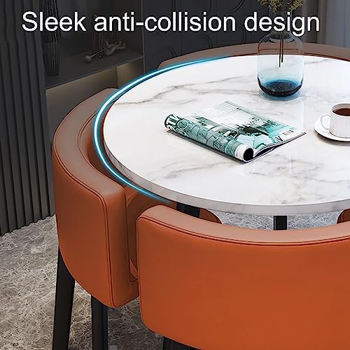Elevate your space with our Versatile Meeting Table & Chair Set, designed to enhance any environment, from bustling offices and chic restaurants to elegant weddings and cozy living rooms. This modern set combines functionality with aesthetic appeal, making it the perfect addition to your conference rooms, lounges, kitchens, and more. **Product Features:** - **Stylish Marble-Look Tabletop:** The sophisticated design adds a touch of elegance to any setting. - **Comfortable Rebound Sponge Seats:** Enjoy prolonged comfort with our cushioned chairs, perfect for meetings or dining. - **Premium PU Leather Upholstery:** Easy to clean and maintain, ensuring your furniture remains looking new. - **Anti-Scratch Mats:** Protect your floors while maintaining stability, making this set ideal for high-traffic areas. - **Sturdy Wrought Iron Feet:** The robust construction ensures durability, making it suitable for various settings. - **Space-Saving Modern Design:** Ideal for smaller spaces without sacrificing style or comfort. **Color Options:** Choose from a variety of colors including Gray, Dark Gray, Yellow, Orange, Pink, Green, Brown, and several two-tone combinations to match your décor and personal style. **Specifications:** - **Table Size:** Round (80cm/31.5") with a wood-based panel for a sturdy surface. - **Chair Height:** 73cm/29" with plush PU leather cushions for added comfort. - **Frame:** Sleek black metal legs provide a contemporary touch. **Set Includes:** 1 table and 4 chairs, fully assembled for your convenience. **Perfect For:** Coffee shops, restaurants, offices, hotels, and bars, this versatile set meets a range of needs while enhancing your environment. *Note: Slight size variations (1-2cm) may occur, and colors may differ slightly due to display settings.* Transform your space with our stylish and functional table and chair set, where comfort meets modern design.