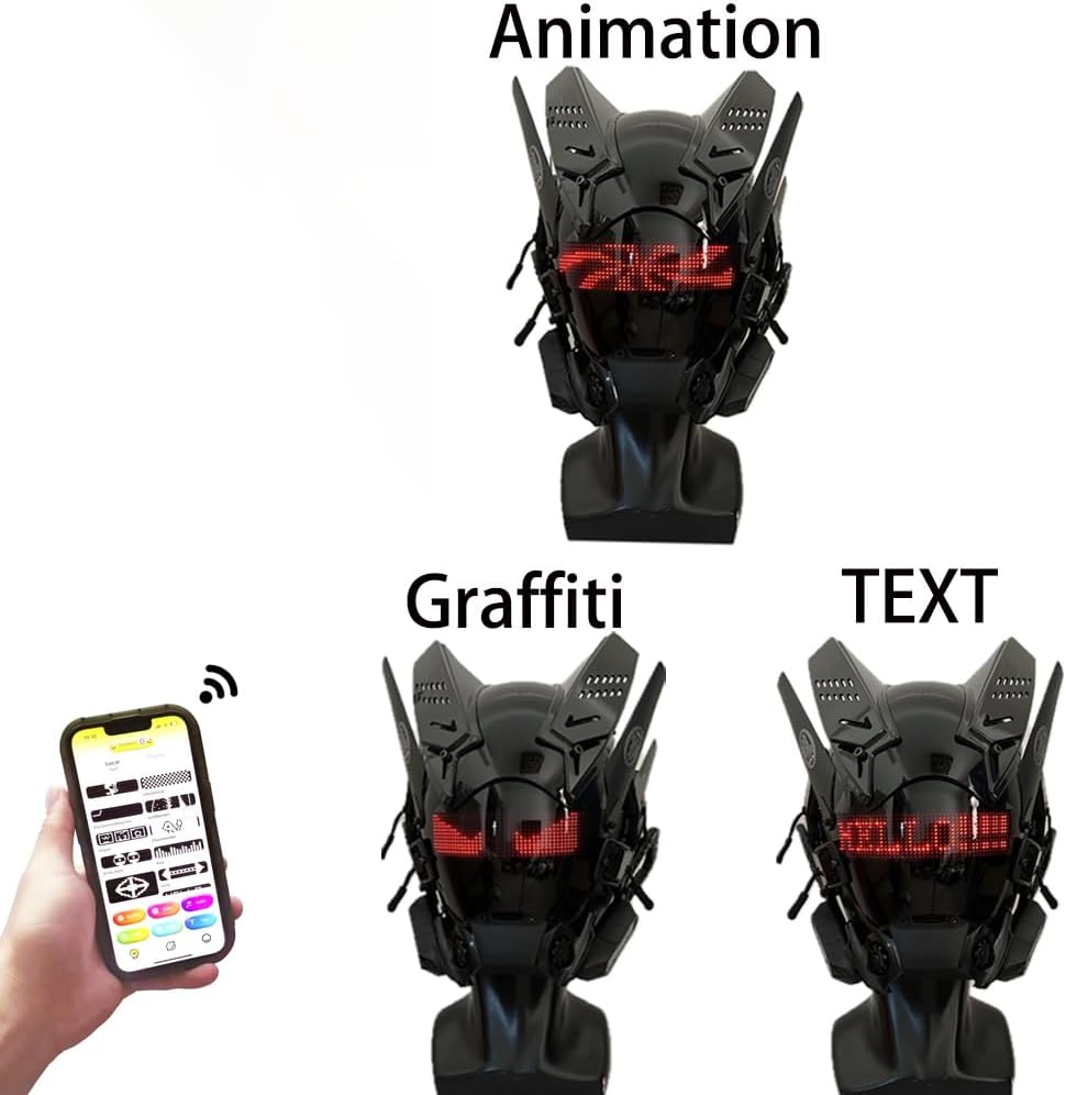 Cyberpunk Mask LED Customizable Bluetooth Mask for Party, APP Control LED Display Smart Mask, USB Rechargeable Mask for Nightclub, Festivals, Raves, Christmas, Cosplay,Birthday Costumes Color