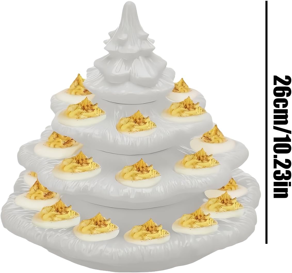 The Christmas deviled egg holder is a versatile and functional addition to your holiday supplies and party needs. Featuring a 4-tier design with 26 holes, this resin-made holder ensures reusability while adding a festive touch to any setting. Perfect for displaying deviled eggs or other small treats, it enhances your home decor during the holiday season. This holder fits seamlessly on a table, countertop, or in spaces like the kitchen, bedroom, apartment, dorm, office, classroom, bathroom, or garden. Its compact yet stylish makes it ideal for indoor and outdoor use, including windowsills. Elevate your celebrations with this practical and decorative Christmas deviled egg holder, blending functionality with seasonal charm for every occasion.SpecificationMaterial: resinHeight: about 26CM/10.23inList4-tier Christmas tree shaped deviled egg tray x1Note:1. Due to lighting effects and display angles, there may be color differences in the product.2. Due to manual measurement, there may be errors in product size, please understand.