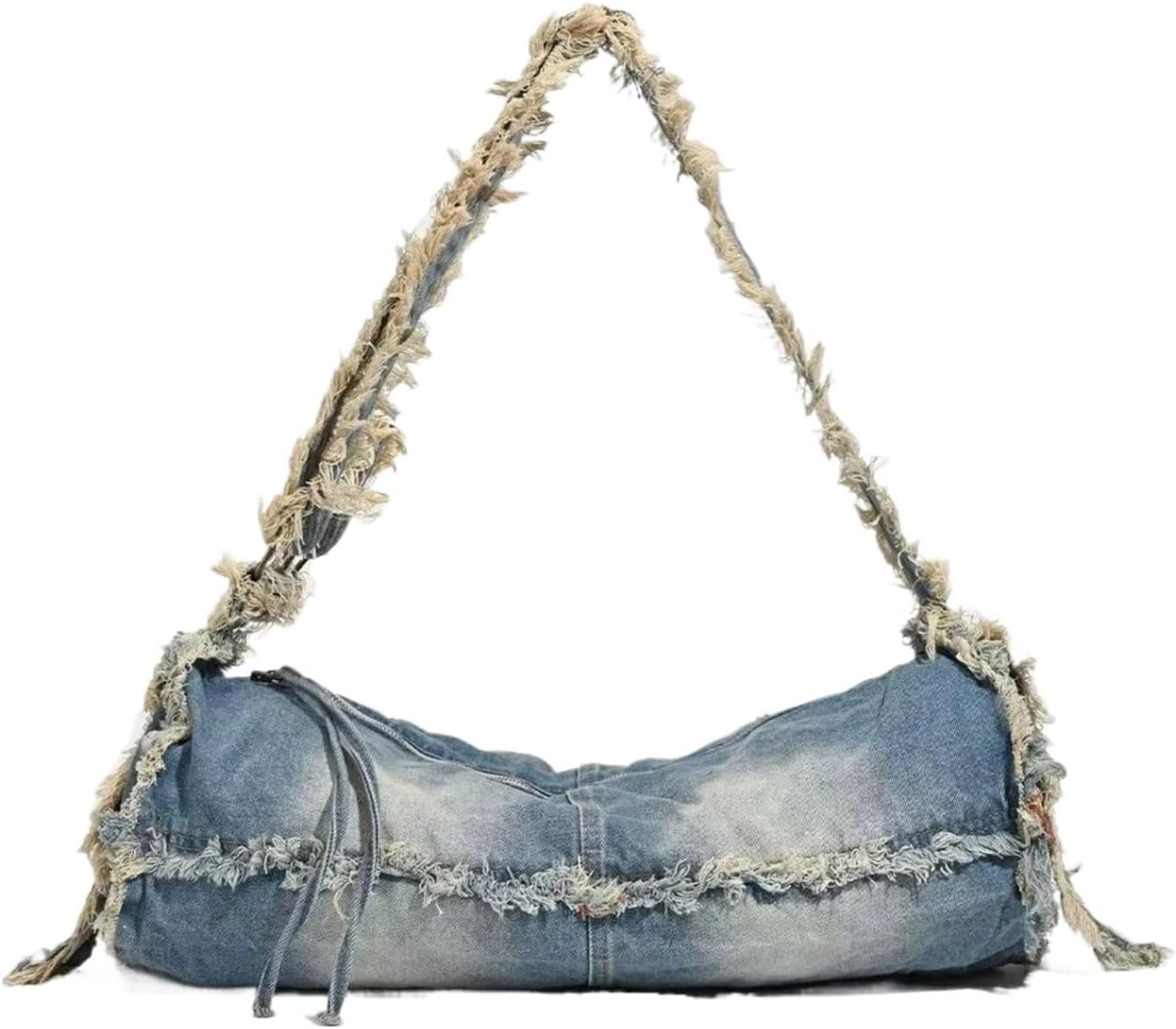 Hardness : SOFTPattern Type : SolidStyle : CasualDecoration : AppliquesNumber of Handles/Straps : SingleLining Material : AcrylicHandbags Type : Shoulder BagsMain Material : DenimShape : Casual ToteGender : WOMENOccasion : VersatileClosure Type : zipper