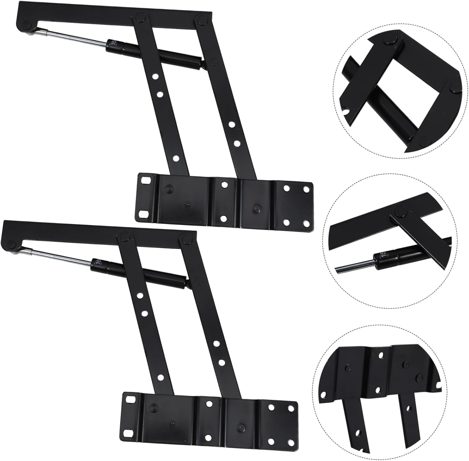 Package List 1 Pair x Spring Folding Stands Characteristics - Size: About 24.50X22.00X4.00cm/9.63X8.65X1.57inch Heavy Duty Lifting Frame. - Material: Iron Table Lift Up Stand. - Color: Black Furniture Lifting Shelf. - After good process, this lifting shelf has a strong structure and can be used safely Lifting Frame for Table. - It can help you save much space to create comfort and convenience of home life Furniture Parts. - materials and ensure its durability and practicality Table Lifting Frame. - Suitable for functional coffee table, tea table, telescopic coffee table etc Furniture Lifting Bracket. - The installation method is simple and will not take you too much time Table Spring Folding Bracket.Goods DescriptionLifting Stand for Table With this kind of lifter, can turn your normal coffee table into a functional coffee table, they also can be used to change the function of other tables.Furniture Spring Folding Bracket This lifting frame is made of sturdy and durable iron material, has a , and can serve you well