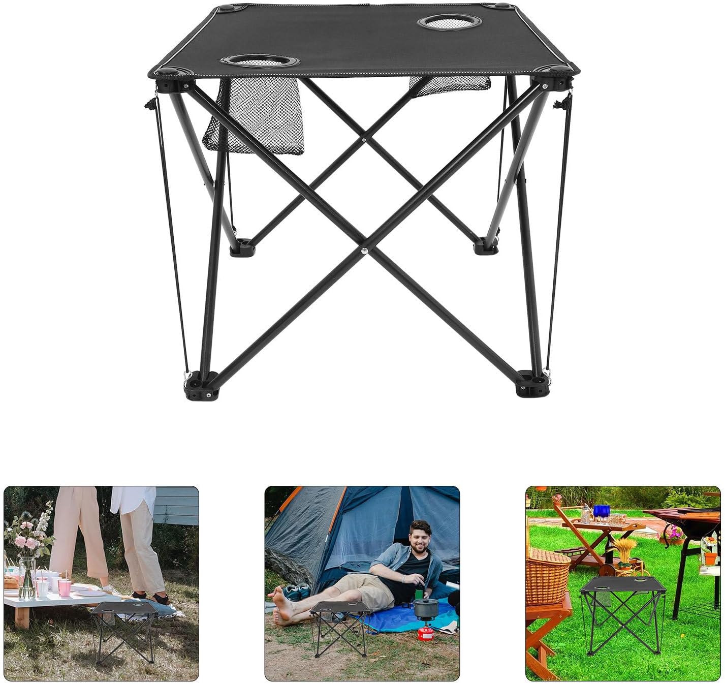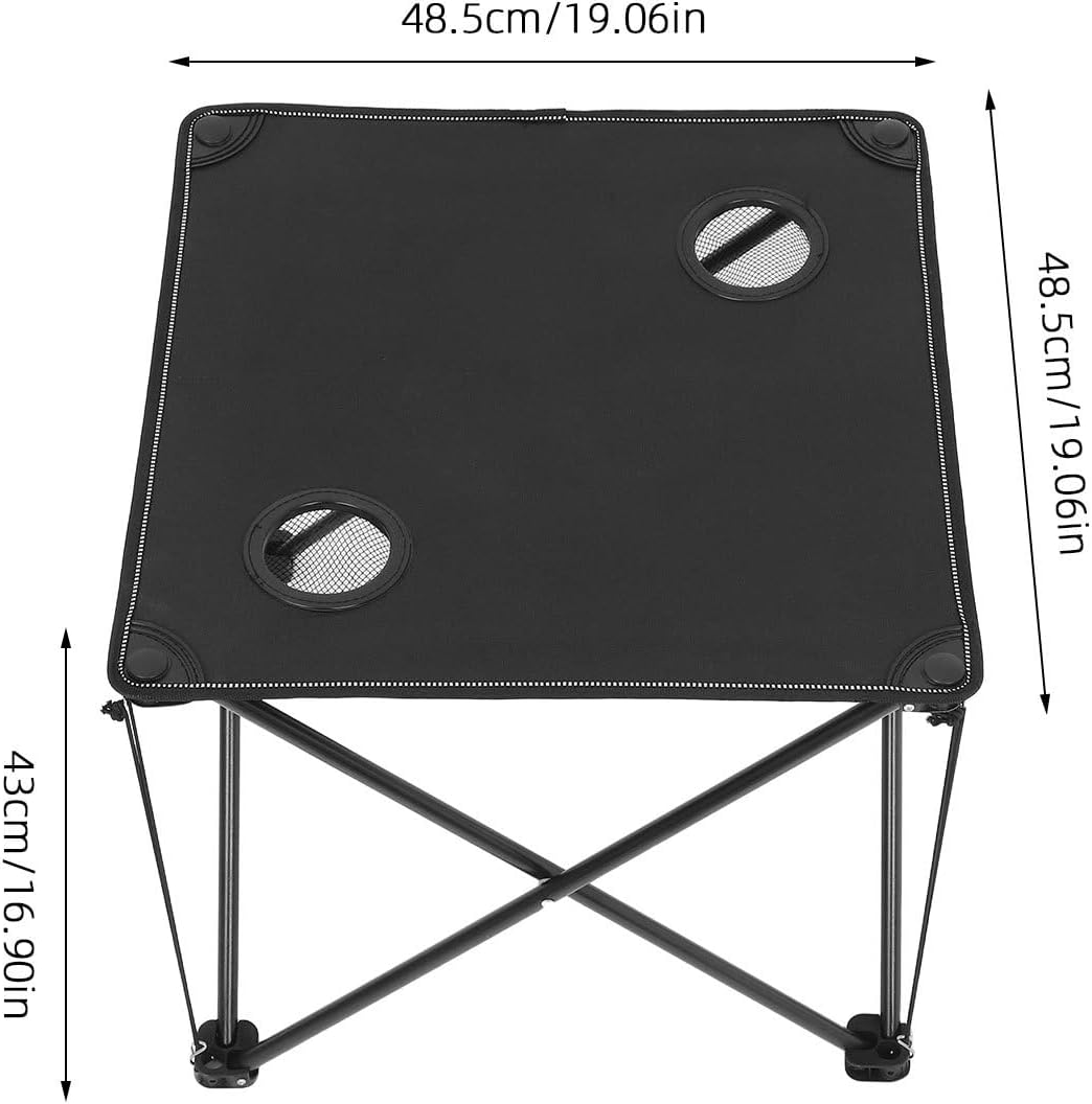Package List 1 x outdoor folding table Features -Product Info: Outdoor folding table -Adaptable use: suitable for various outdoor activities including picnics, camping, and barbecues, providing flexibility for different scenarios collapsible camping table -Functional design: features two cup holders for convenient storage of drinks and other small items folding table -Reinforced frame: the metal tube design ensures a strong and stable table frame, capable of supporting heavy weights portable folding table -Material: constructed from thickened oxford cloth, it offers exceptional durability and resistance to abrasions -Material:Oxford cloth, iron, plastic -Color:Black -Size: 48.50X48.50X43.00cm/19.06X19.06X16.90in -Quick setup: the collapsible portable table can be easily set up and taken down, making it ideal for spontaneous outdoor activities camping picnic tableGoods Informationoutdoor table Whether you're grilling, dining, or simply relaxing, this table is a reliable companion.camping tables The collapsible design ensures it fits easily into your gear, while the strong fabric surface supports your outdoor activities.camping table Ideal for beach picnics and camping adventures, this foldable picnic table combines convenience with durability