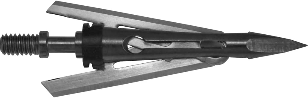 The design of the Hatchet mechanical broadhead provides a 2” entrance wound and a 2” wide channel through to the exit hole. The 2″ surgical cut of the rear deploying Hatchet will ensure a short blood trail and fast recovery of game. The stealth-like design provides field point deadly accuracy. The Hatchet is CNC machined out of carbon steel. Clipless retention system holds blades in place on the arrow or bolt until impact.