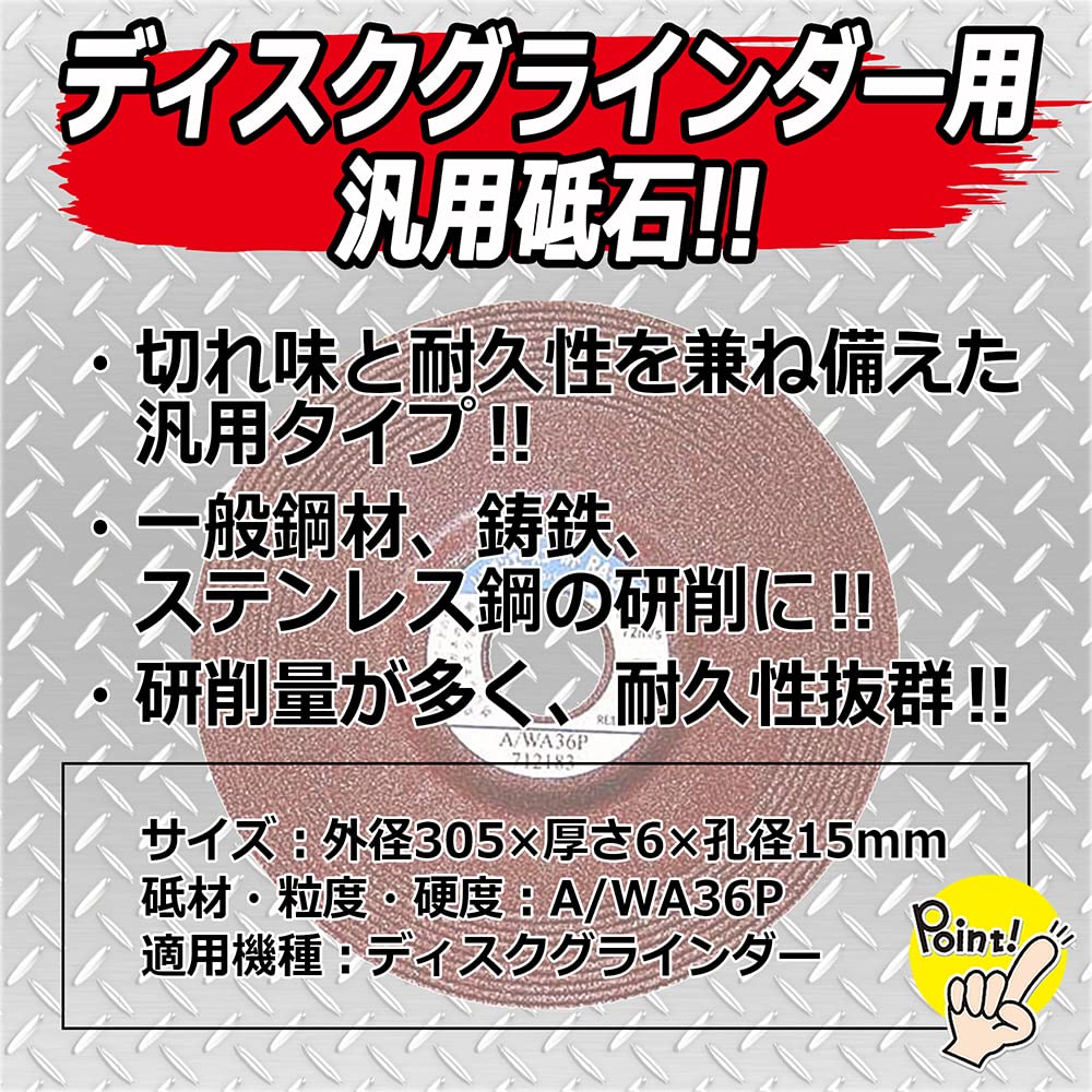 A general purpose whetstone that combines sharpness and durability. Grinding of general steel, cast iron, and stainless steel. A set of 5 durable general purpose whetstones with a large grinding amount. Note: Attach the grinder's whetstone cover. Be sure to wear protective glasses, mask, etc. Be careful of moisture or water and store in a flat place.