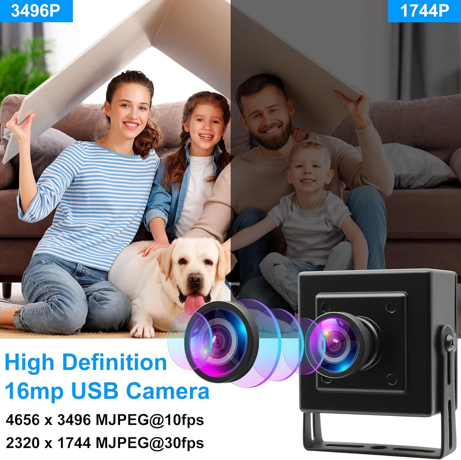 | Features | camera with UVC for computer, laptop, pc, raspberry pi, etc., high definition 16mp, imx298 image sensor, mini size, Lightweight, wide angle 120degree low distortion lens |