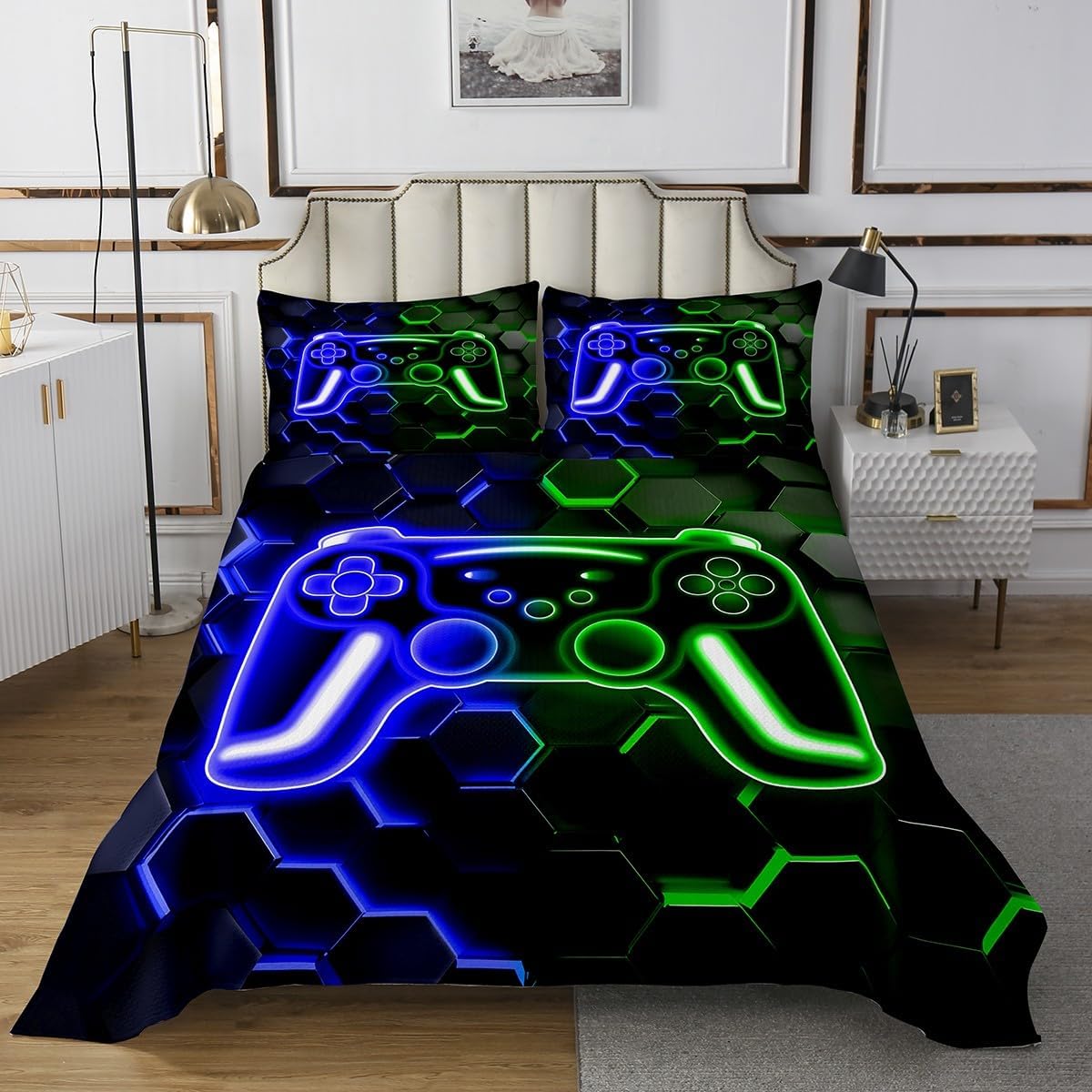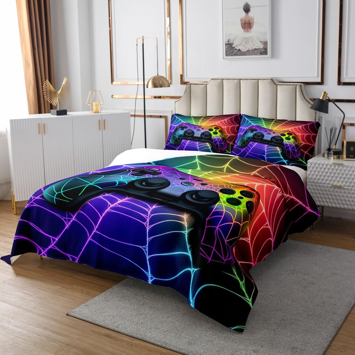 Makeover Your Bedrooms Every Season with Our Bedspread Set,Perfect Quilt Set for Your Room,Girls Boys Youth Room,Master Bedroom. Size Information Twin Size Include 1 Quilted Bedspread(68"Wx90"L) and 2 Quilted Pillow Shams(30"Wx20"L). Queen Size Include 1 Quilted Bedspread(90"Wx90"L) and 2 Quilted Pillow Shams(30"Wx20"L). King Size Include 1 Quilted Bedspread(104"Wx90"L) and 2 Quilted Pillow Shams(36"Wx20"L). A Luxurious Product for Homes,Dorm Rooms,Hotels,Guest Rooms.Practical to Use for Being Polyester,Feels Like Cotton Which Is Super Soft and Breathable.No Chemicals Used,No Dye Substance Harming The Health of You or Your Family. Vivid Colors Won't Fade Thanks to New 3D Digital Printing Methods.These Unique Designs Coverlet Set Match Well with Various Color Palettes of Your Rugs,Curtains,Headboard,Furniture,and All Other Decor Accessories. As Manufacturers of Digital Printed Home Textiles,We Follow Current Trends and Bring You The Latest Home Fashion. Either to Your Family,Friend,Relative,Boyfriend Girlfriend,Your Mom,Dad,Sister,Brother,Grandma,Wife,Husband,Daughter,Son and All Other Beloved Or to Yourself,The Item Should Be Interesting and Authentic. The Bedspread and Pillow Shams Are Printed on The Front Side Only,The Back of Bed Set Bedding Set Are White Colored.Comforter Is Not Included In The Set. Your Satisfaction Is Our Priority,We Sincerely Hope You'll Love it.