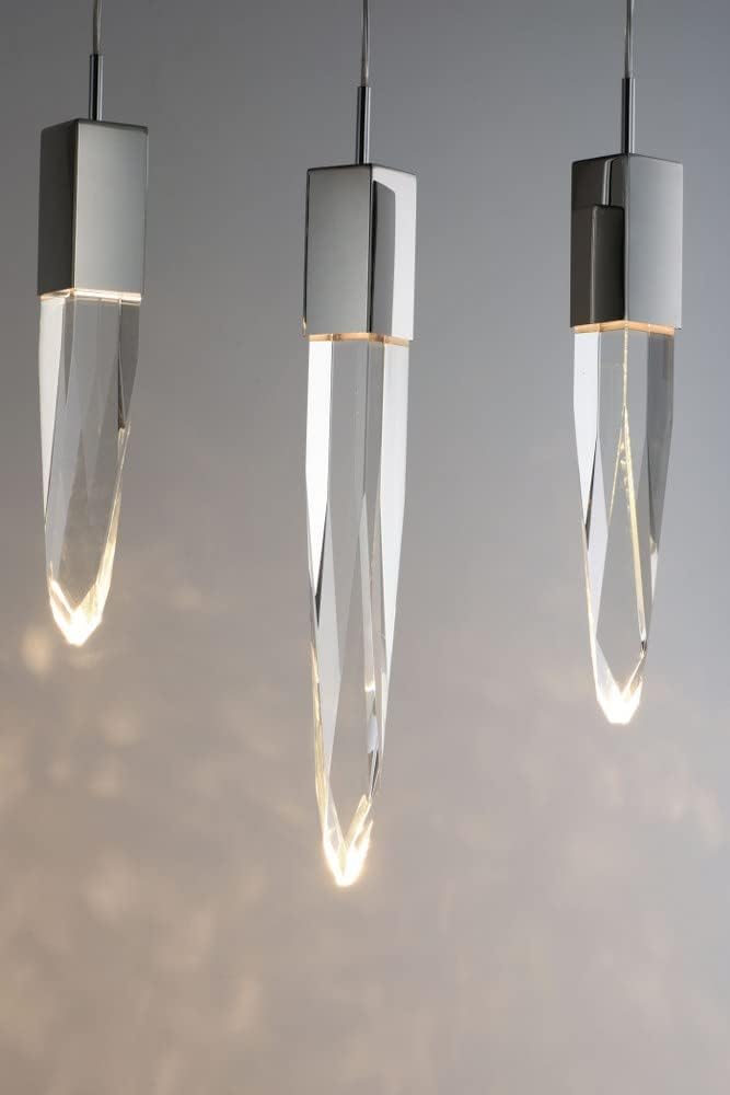 Stalactites Of Clear Beveled Crystal Suspend From Your Choice Of Polished Chrome Or Black Supports, Can Be Hung At Various Heights To Create A Spectacular Array. The Crystal Shimmers As Light Diffuses Through The Facets Powered By 90 Cri Led Dimmable Modules.