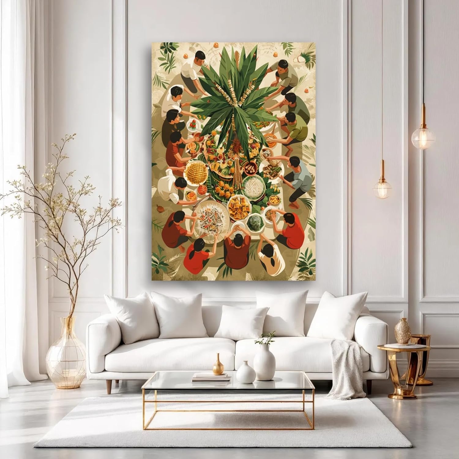 >>Add Color To Your Life<< By injecting colorful elements in your space, and turning the empty wall from monotonous to vibrant. The overall effect is simple and exquisite. This framed poster is easy to hanging, It can bring you color and joy, making you feel happy physically and mentally when you see it. >>Applicable Locations<< You Can Place Them In Various Place. The Filipino Boodle Fight Feast Framed Wall Art Will Be A Pleasure To Look At Every Day In Your Living Room, Bathroom, Bedroom, Library, Nursery, Study, Office, Hall, Gallery, Apartment, Guest Room, Restaurant, Conference Room And Corridor.