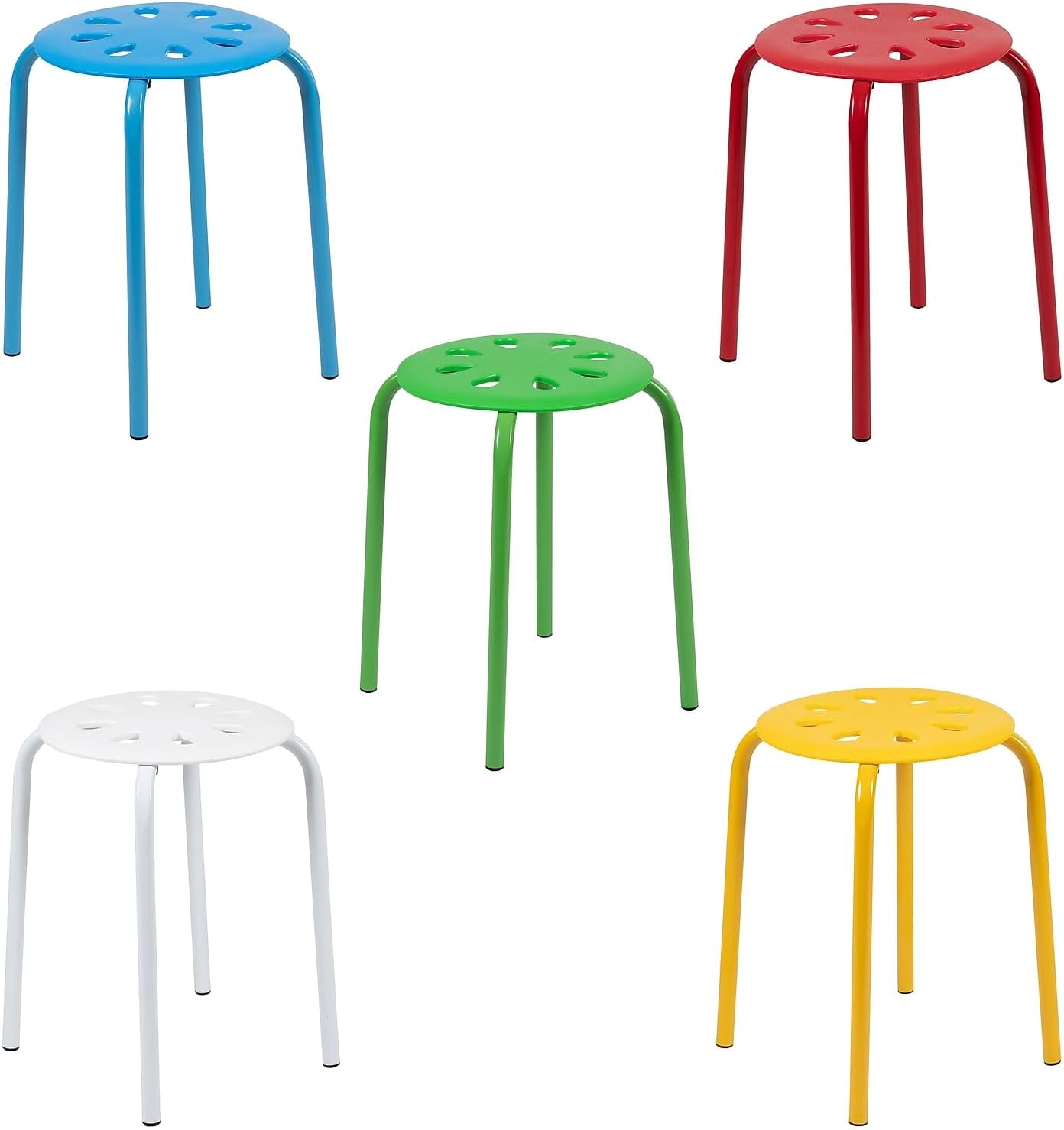 Fun for any environment these portable plastic stack stools in colorful colors allow you to have seating anywhere. Sized perfectly for flexible classroom and office spaces. For remote learning spaces, these adorable stools accommodate a separate space for reading and creative activities. With a stack capacity of 5 stools, these chairs conveniently store away until your next event or gathering. Whether you're celebrating in the home, providing seating for students in the classroom or are on the road in an RV these lightweight multipurpose stools are an excellent choice anywhere.