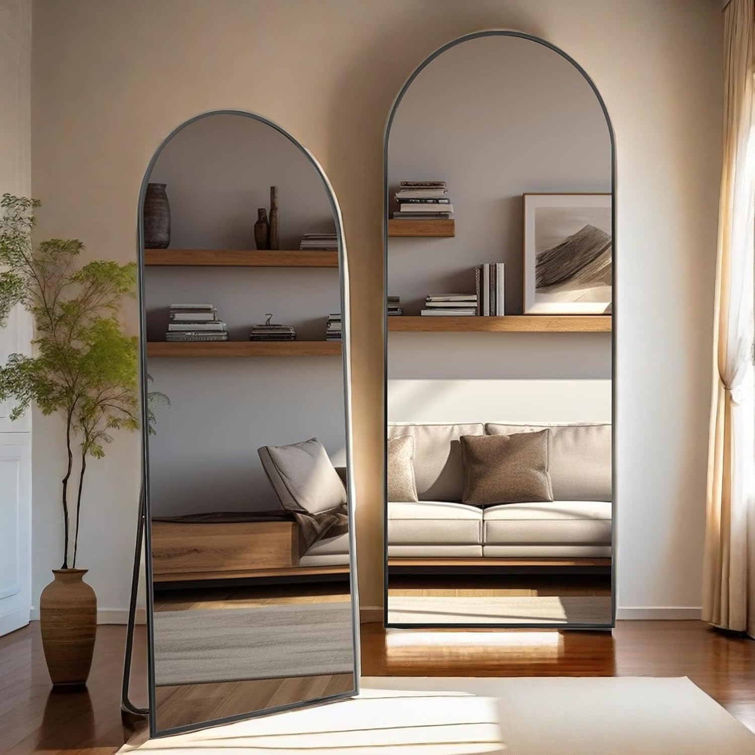 GlasFlength Full Length Mirror with Stand, 59"X16" Aluminum Alloy Floor Standing Mirror, Wall Mirror Hanging or Leaning Against, Body Mirror for Bedroom Living Room Dressing Room, 59IN-Arched-Gold