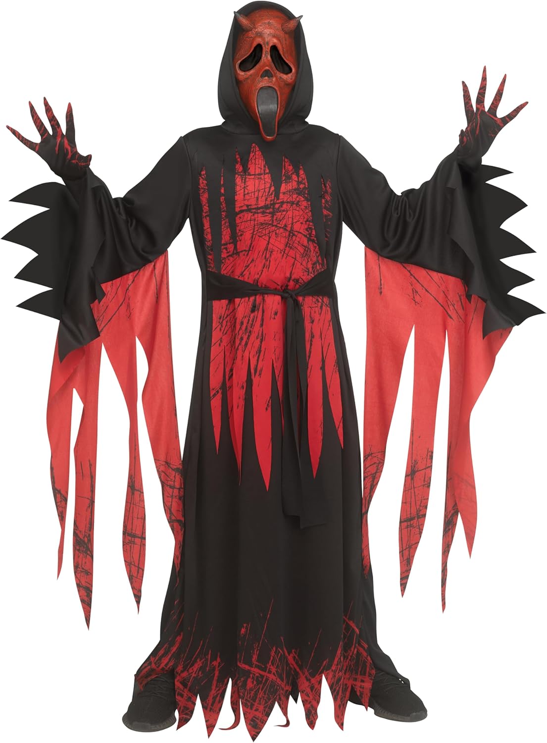 Let your child unleash a haunting new twist on a horror icon with the Officially Licensed Aged Devil Ghost Face Child Costume. This chilling version of the classic Ghost Face adds a demonic edge with a cracked, aged devil mask that’s perfect for scaring up screams on Halloween night. Complete with a tattered black robe featuring jagged hems and long, flowing sleeves, this costume delivers creepy vibes from head to toe. Whether trick-or-treating or heading to a haunted house, your little ghoul will be ready to terrify in true slasher style.
