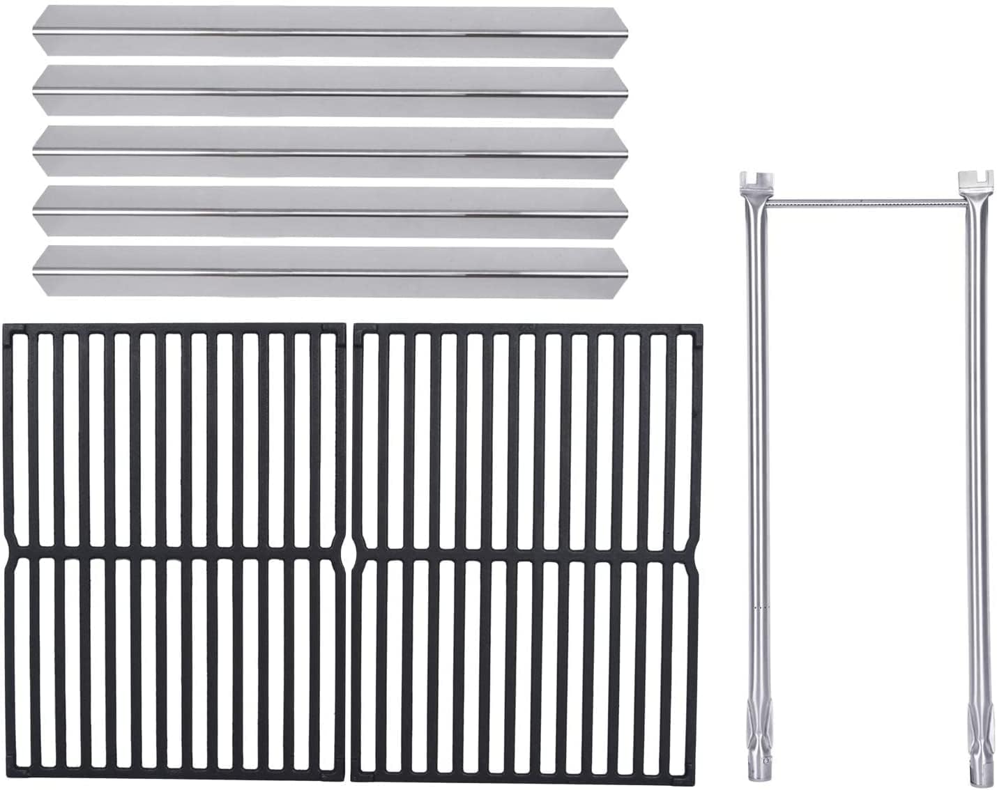 Specifications: These grill parts kit include 5 pcs flavorizer bars, 2 pcs grill cooking grates and a set of stainless steel burner tube Parts kit replacement for Weber Spirit 200 series gas grills (With Side-Mounted Control)(2009-2012 Models): Spirit E-200, Spirit E-210, Spirit S-200, Spirit S-210 Also replacement for Weber Spirit 500, Genesis Silver A. Replacement for Weber parts: 7534, 7535, 65902, 7521, 7522, 7523, 65904, 65905, 7507 Flavorizer bars dimensions: 21.5 inches long, 1.7 inches wide, 1.7 inches hide Grill cooking grates dimensions: 15" x 11-1/4" inches for each, 15" x 22-1/2" for 2 unit Burner tube dimensions: 27 inches long, crossover burner 10 1/2 inch Flavorizer bars and burner tube set material: Stainless Steel. Cooking grate material: Cast Iron. Durable and corrosion resistant material Sold heat shield plates, cooking grate and burner tube in a set, one-stop shopping, get what you need in a decent price to renew your grill Note: Aftermarket replacements, please double-check the model of your bars before you order