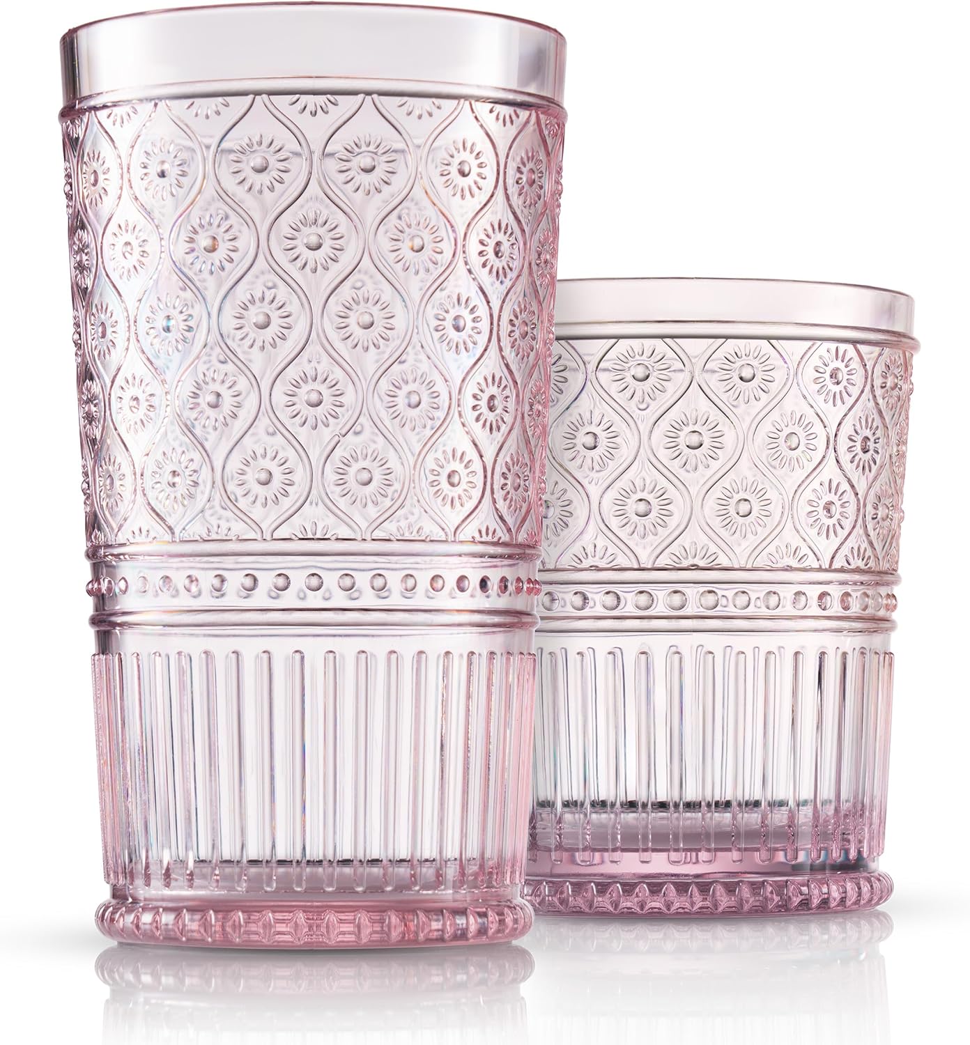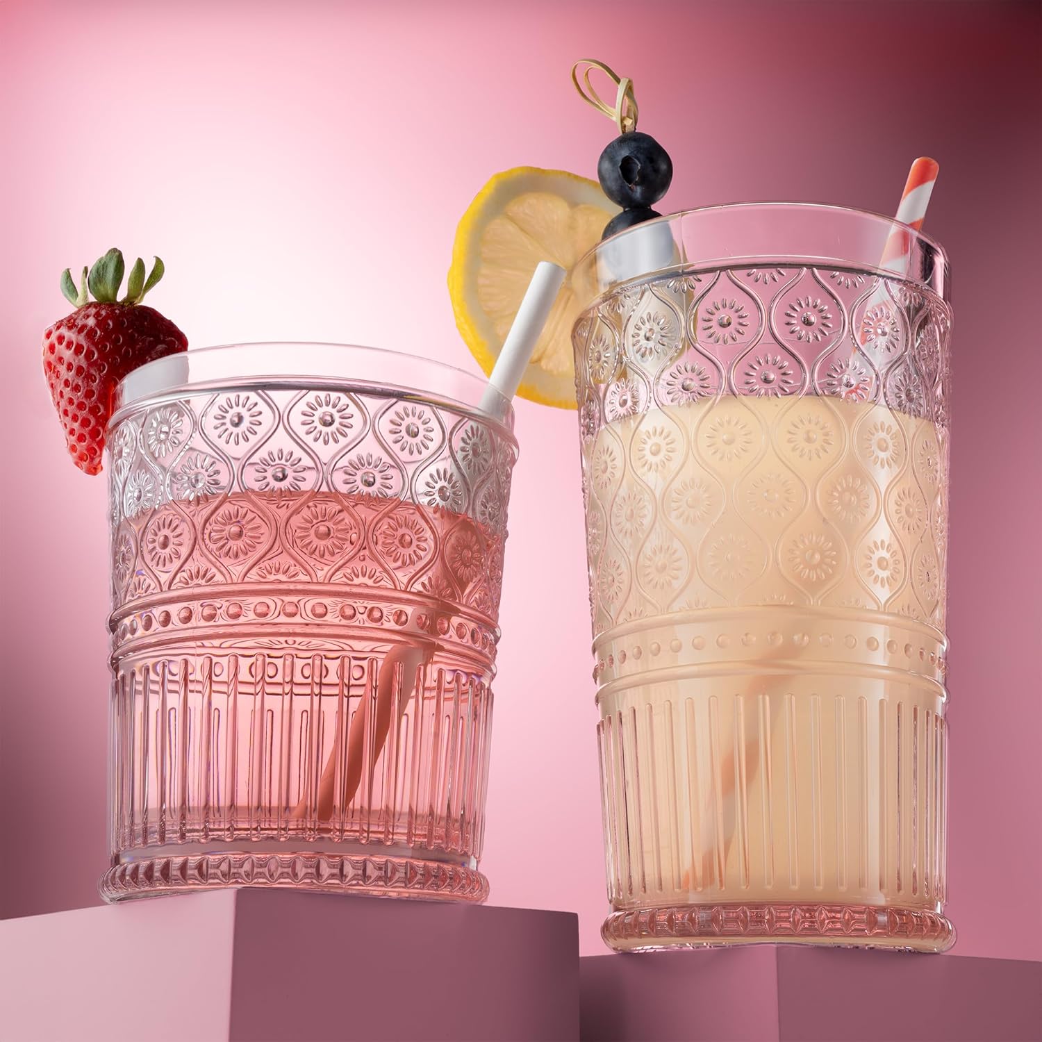 Drinking Glasses Set of 12, Acrylic Drinking Glasses Kitchen Glasses, Cocktail Glasses, Elegant Plastic Cups, Whiskey Glasses, Water, 6 Tall Glass Cups & 6 Short Glasses - Blush