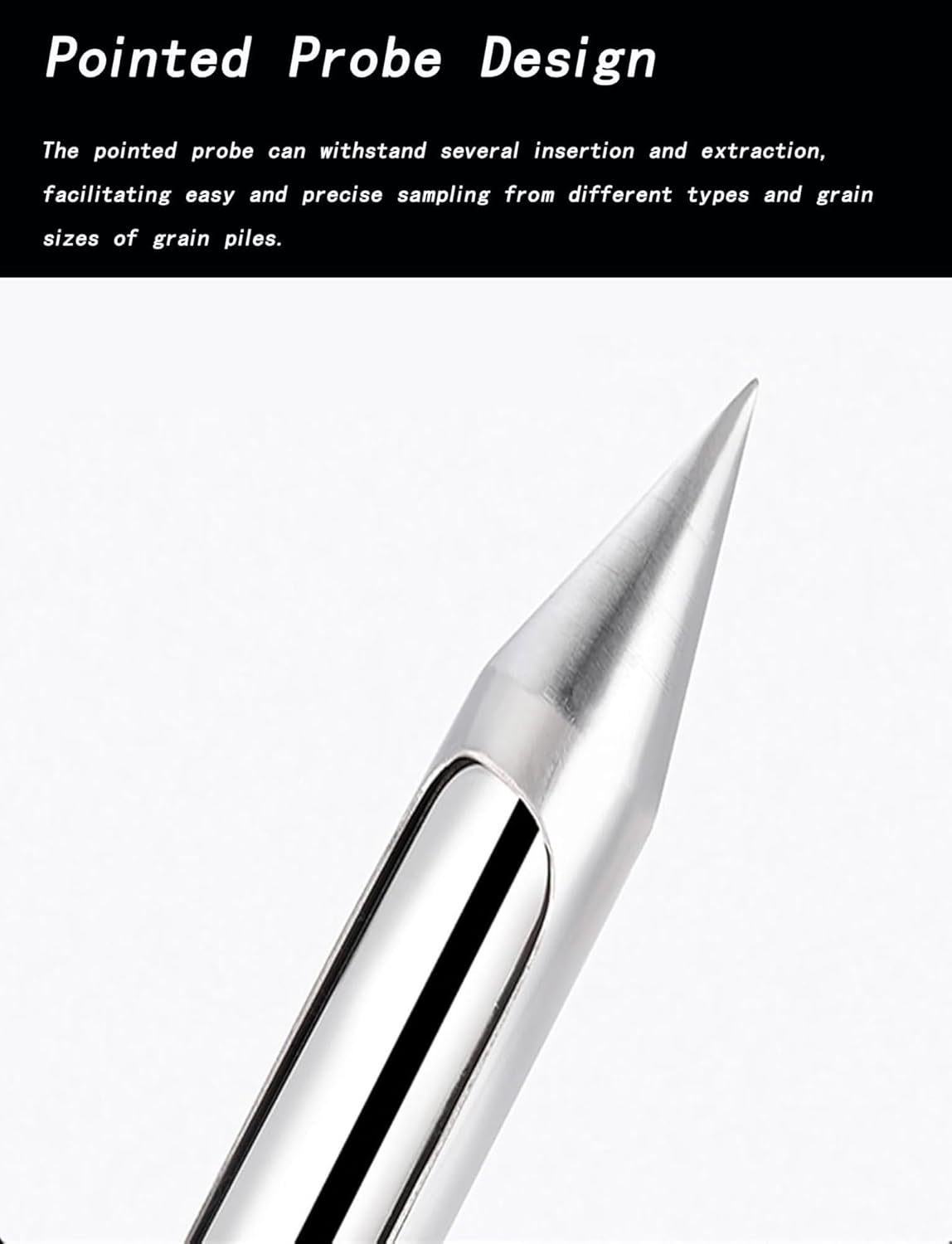 The Stainless Steel Grain Probe Sampler is a high-quality tool designed for reliable and precise sampling of grains, powders, and fertilizers. Whether you are a farmer, researcher, or quality control professional, this lightweight and efficient sampler is essential for agriculture and soil testing, ensuring you achieve accurate results in every scenario. **Key Features:** **Durable Stainless Steel Construction:** Crafted for heavy-duty performance, this sampler is resistant to corrosion and wear, guaranteeing long-lasting reliability in diverse agricultural environments. **Folding and Portable Design:** The innovative folding mechanism allows for easy storage and transport. Whether you're heading to the field or storing it in your toolkit, this sampler is perfectly designed for convenience, with detachable sections that provide quick access to samples on the go. **Versatile Sampling for Various Grains:** This sampler is ideal for collecting samples from rice, corn, wheat, and a variety of other grains, as well as powders and fertilizers. It accommodates different grain sizes, ensuring that each sample represents the material accurately. **User-Friendly Pointed Probe Design:** The pointed probe enables straightforward insertion into grain piles or other materials, facilitating smooth sampling with minimal disruption to the sample area. **Simple Operation:** To use, simply insert the sampler into the material, rotate the handle to open the sampling slot, collect your sample, close the handle, and remove the sample for analysis. It's that easy! The Stainless Steel Grain Probe Sampler is a valuable addition for anyone involved in grain or fertilizer work, providing you with dependable, efficient, and accurate sampling every time. Enhance your grain testing capabilities today and discover the improved accuracy and convenience it brings to your processes!