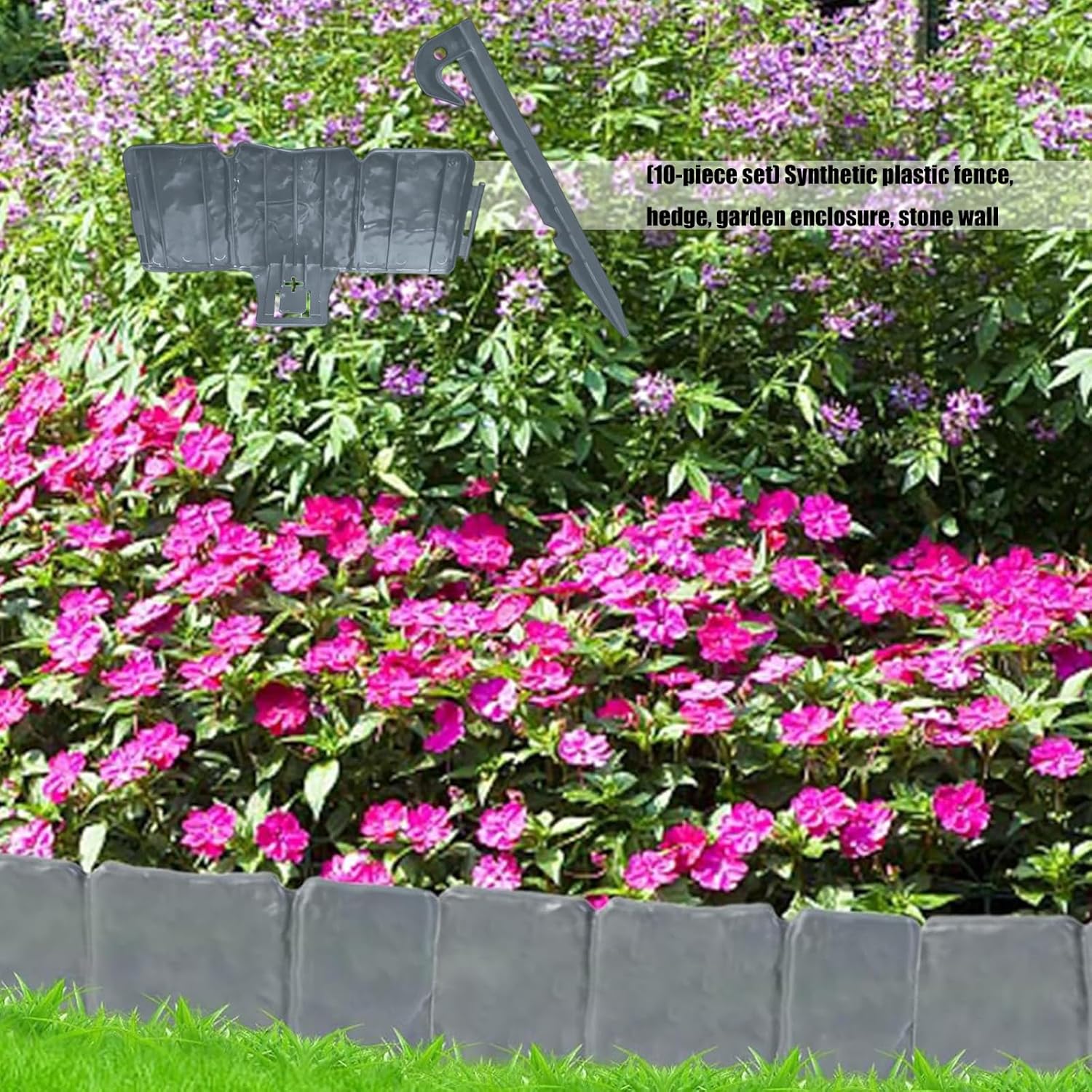 Imitation Stone Brick Plastic Flower Beds Border Insert Easy Installation For Outdoor Patio Balcony Panels DecorationFeatures: High aesthetic value, simple and beautiful design, it is helper for your gardening life.Upgraded buckle, enlarged and thickened buckle, easy to install and disassemble without worrying about detachment during loading and unloading.Easy installation, easy insertion into soil without time-consuming or laborious process.The design is versatile and can be freely changed according to the actual situation, making easy installation more convenient.Designed to withstand weather extremes while cleanly separating mulch or soil in garden beds and pathways.Specifications: Component:PlasticColor:White/Grey/BlackSize:Approx.9.6x4in/24.5x10cmPackage Includes: 10 Set Garden Edging BorderNote: 1.Please allow 1-2cm errors due to manual measurement, making sure that you not mind before order. 2.Due to the differences between different monitors, the picture may not reflect the actual of the item.