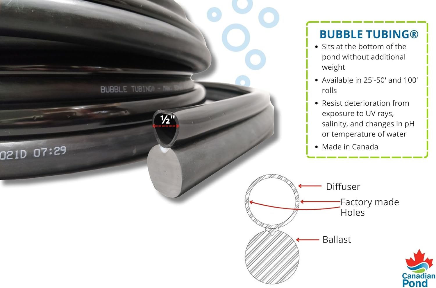 Exclusive to CanadianPond .ca, Bubble Tubing is a linear air diffuser for aeration, de-icing and bubble curtains. It is designed and manufactured in Canada under our specifications. It provides a substantial and efficient transfer of oxygen to water for best in class aeration needs.