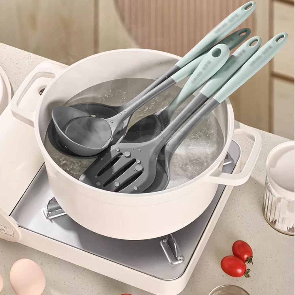 Easy to clean and dirt free, integrated and can be cleaned with just flush.Comfortable to grip, easy to stir fry, and fits snugly with the palm of the hand.Safe to use at high temperatures, with no deformation after prolonged use.High temperature cooking has no odor, making it more reassuring for you to use.Spade surface hollowed out, automatic oil filtering, fried and grilled with oil saving edge sloping, fitting well without damaging the potName: Kitchenware SetMaterial: SiliconeColor: As shown in the pictureNumber of pieces: 5Specification: Kitchenware set * 11. Due to screen display differences, there may be slight color differences in the visual. Please refer to the product received.2. Manual measurement may have slight errors, please understand.