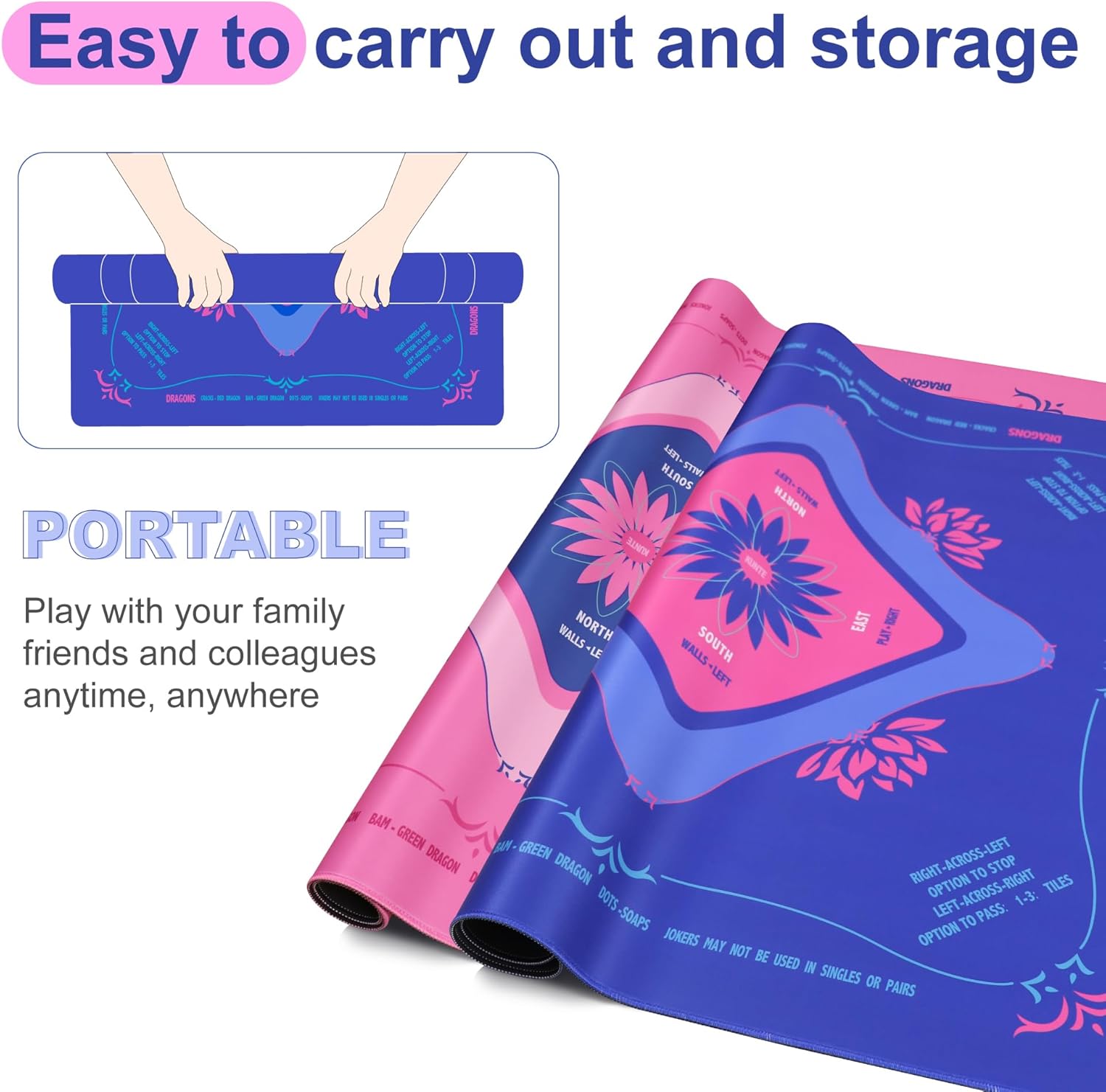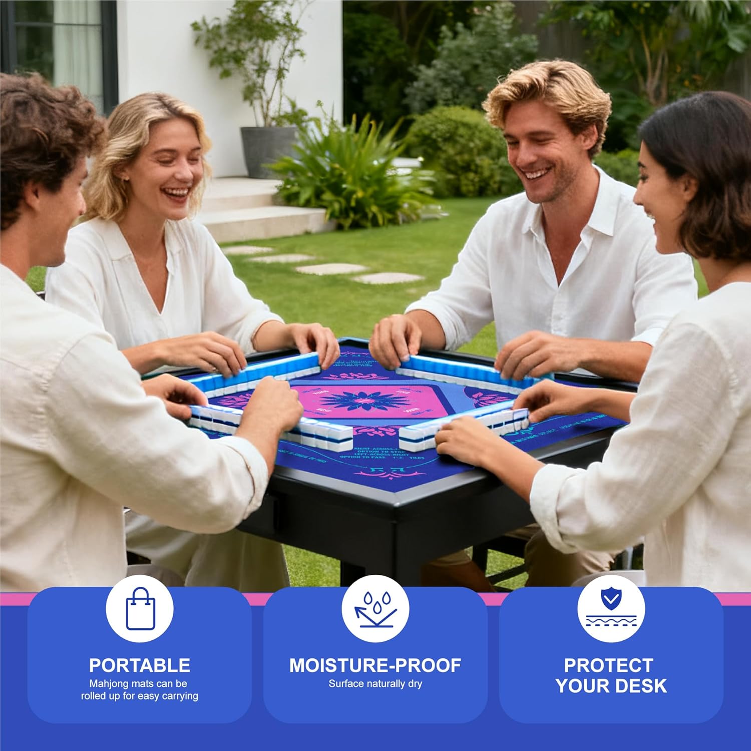 | Set Name | Blue Floral Mahjong Game Mat with Printed Rules - Includes Carry Bag and Dice |