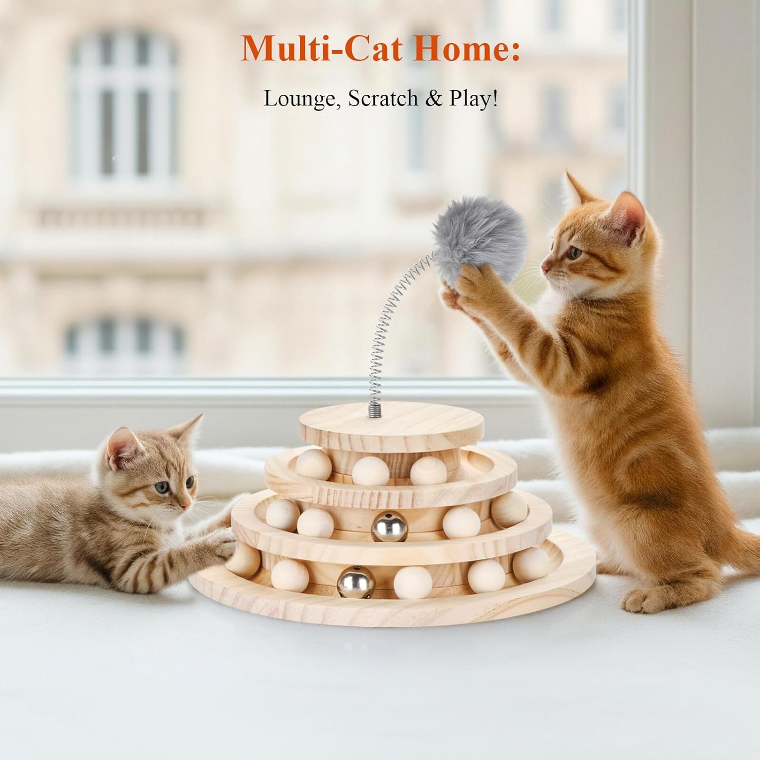 2-in-1 wooden cat toy tower with spring cat toy stick