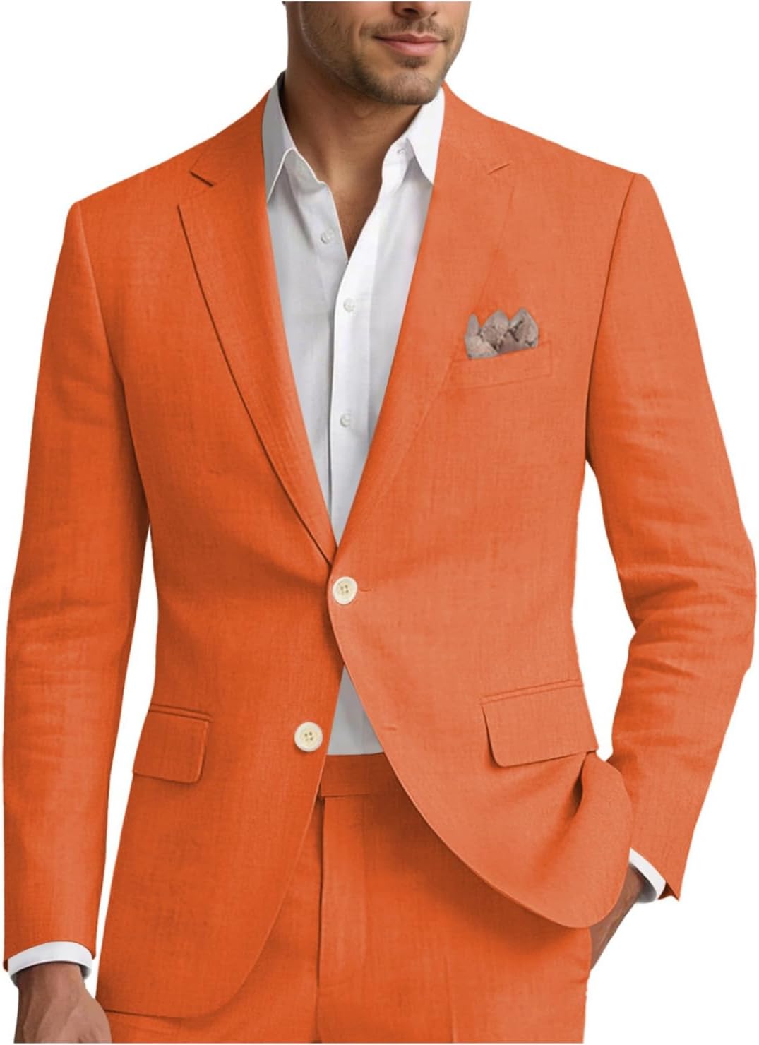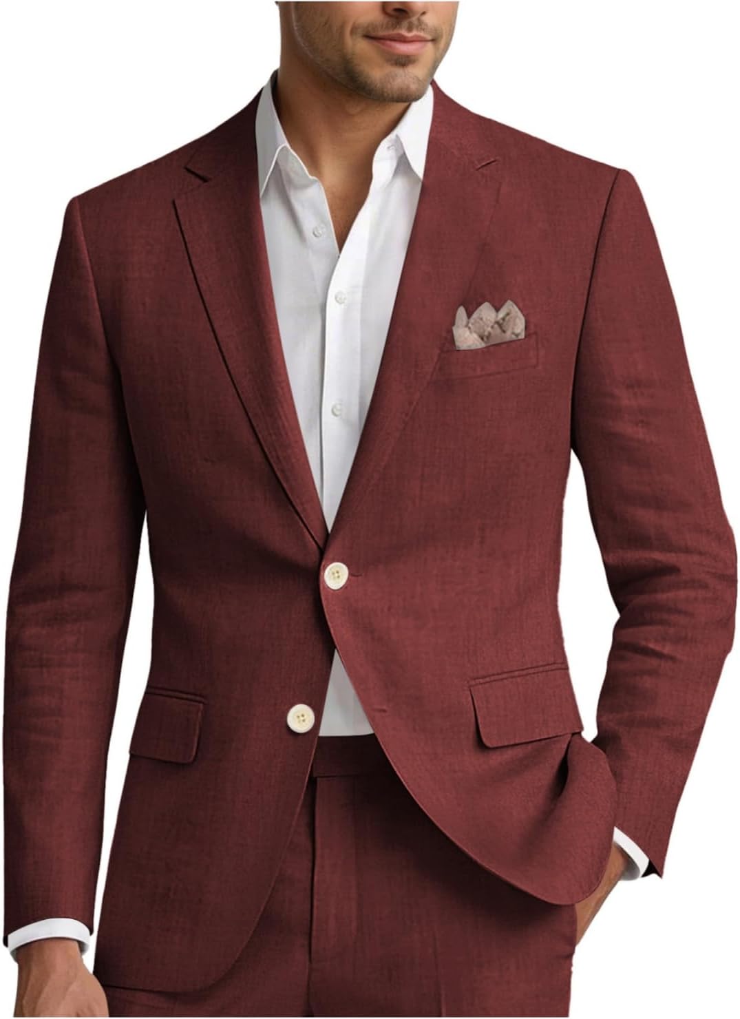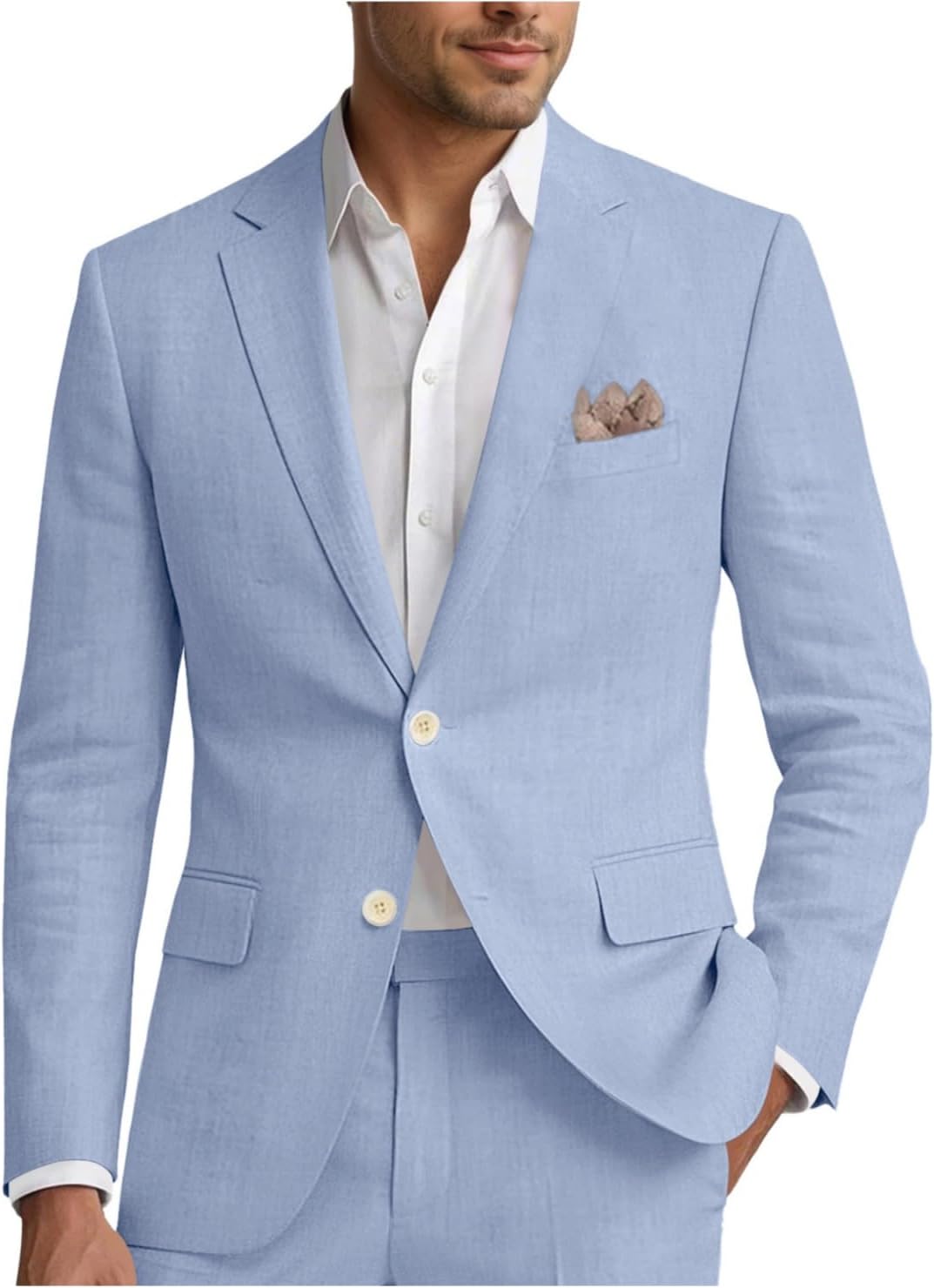 This linen suit for men is specially designed for modern gentlemen. Made of high-quality and comfortable fabrics and combined with exquisite three-dimensional cutting techniques, it perfectly balances business formality and fashionable casual styles. A two-piece mens linen suits 2 piece is made of soft, skin-friendly, wrinkle-resistant and wear-resistant fabric. Breathable and comfortable.Our men's linen suit features a modern cut that suits the body type of Asian men. Linen suit can not only modify your figure, but also allow you to move freely and always present an elegant posture. Whether wearing a shirt and tie to a business occasion or pairing it with a casual T-shirt to create a casual look, this linen suit can showcase a man's mature charm. This multi-functional men's linen suits set is suitable for important occasions such as workplace commuting, business meetings, and wedding banquets, helping you handle various social scenarios with ease and showcase your confident demeanor.The size of a 2-piece linen suit for men!When it comes to the size selection of mens linen suit, we considerately offer the full size range of SSM-6XL and a detailed size table. It is recommended that you carefully measure your body dimensions before placing an order. We also welcome you to provide custom-made men's linen suits tailored to your personal size. In terms of color, there are various versatile color series such as classic black, dark gray, and navy blue to meet the needs of different occasions.Regarding packaging!The package includes: 1 suit jacket + 1 pair of trousers.Tips!1. Due to manual measurement, please take into account minor differences.2. Due to lighting and screen Settings, the color may slightly differ from the image.