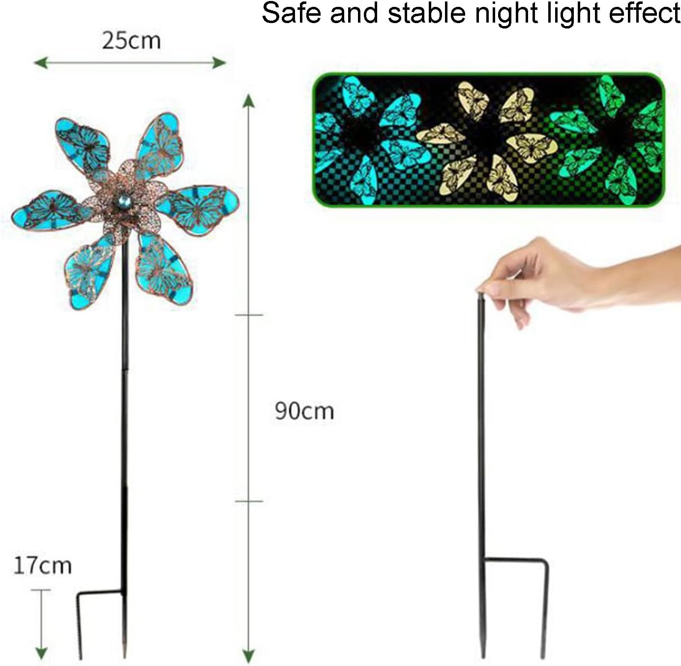 Differentice colorful windmill yard art are a great ornament for outdoor design & entertainment,especially when the wind is blowing the windmill gives the garden additional pop of color Description: Material: Iron Craft Item Dimensions :90*25cm/35*10inch Colors:blue,yellow,green, Impermeability grade: IP65 Power Source:Solar Powered Package include: 1 pcs*Garden Solar Wind Spinner