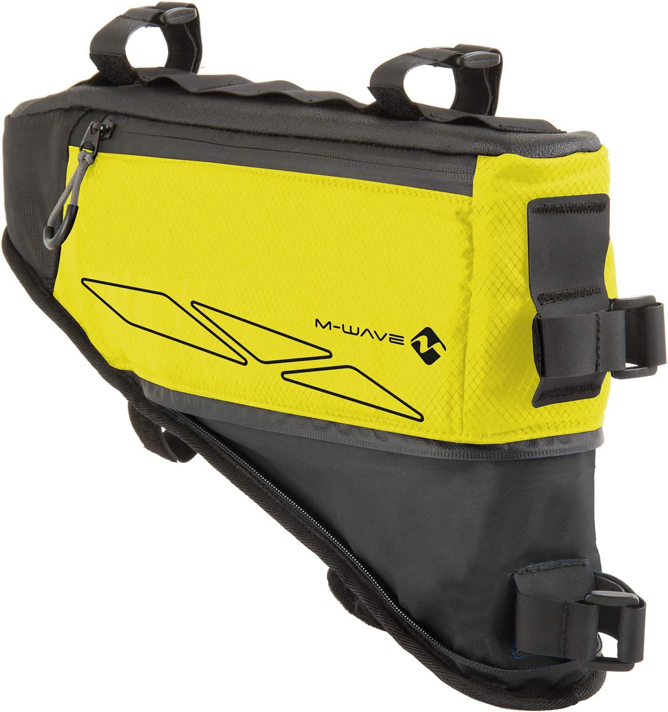 The M-Wave Rough Ride Triangle Frame Bag is perfect for the times you need to carry your gear with you but don't want to install a permanent carrier rack. This water resistant, tear resistant handlebar bag has a volume of about 4. 2 liters and dimensions of approximately 42 x 14-25 cm. You don't have to worry about complicated setups. This bag offers secure mounting with three universal Velcro fasteners. The bag's neon yellow color will help you be more visible and reflective imprint. The Rough Ride Frame triangle Bag is ready for any ride.