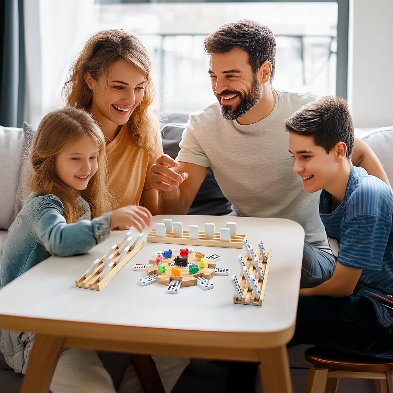 | Included Components | 91 tiles + 4 wooden trays + 1 portable case + 9 colorful small train + 1 instruction + 1 scoreboard + 1 octagon shape hub. |