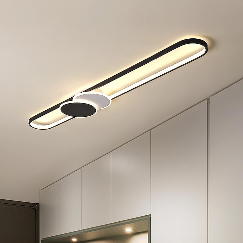 Specifications:Style: Modern/Nordic/MinimalistLamp type: ceiling lamp.Material: Aluminum+Acrylic.Color: Black (as shown in the picture).Size: (Please refer to the size chart).80cm/31.5 inches100cm/39.4 inches120cm/47.3 inchesSize conversion: 1 centimeter=0.39 inches.Light source type: LED light source.Color temperature: 3 color dimming.Wattage: 40W/47W/53W.Voltage: 90-260V.Average service life: 50000 hours.Exposure area: 5 ㎡ -10 ㎡.Applicable places: entrances and exits, restaurants, corridors, corridors, exhibition halls, cafes, bars, hotels.Features:Environmentally friendly.Easy to install.Value for money.Package list: 1 ceiling light.